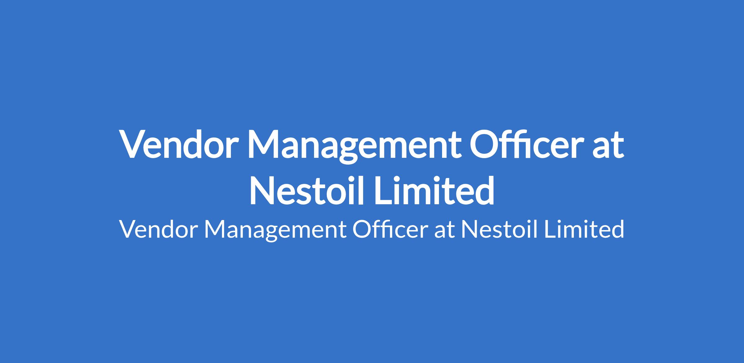 Nestoil Limited is recruiting to fill the position of: Vendor Management Officer. Interested candidates should possess a Bachelors Degree in Business Administration, Supply Chain Management, or a related field with 4-6 years of experience in vendor management, procurement, or a related field, preferably in the oil and gas industry.