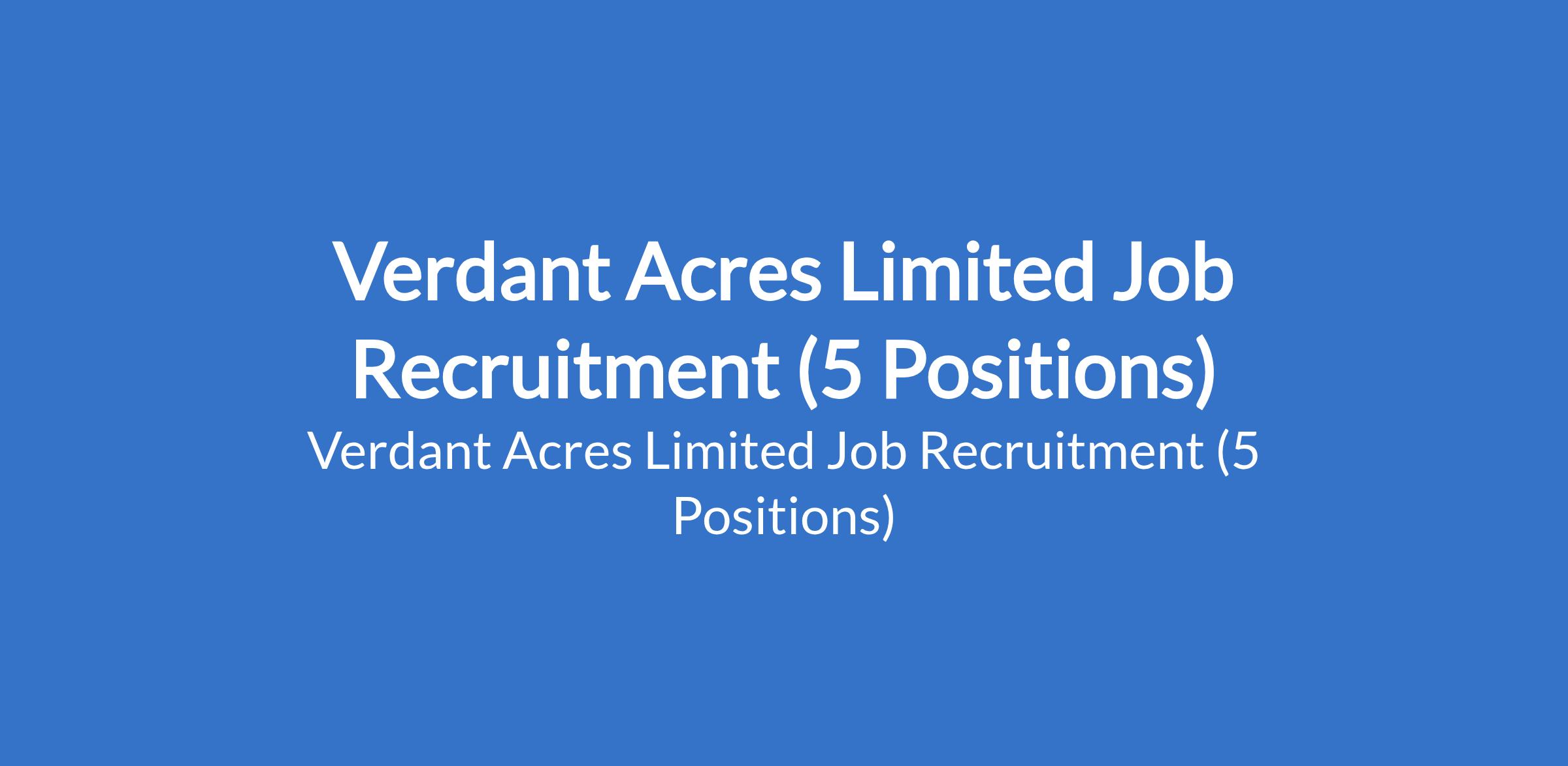 Verdant Acres Limited Job Recruitment (5 Positions)