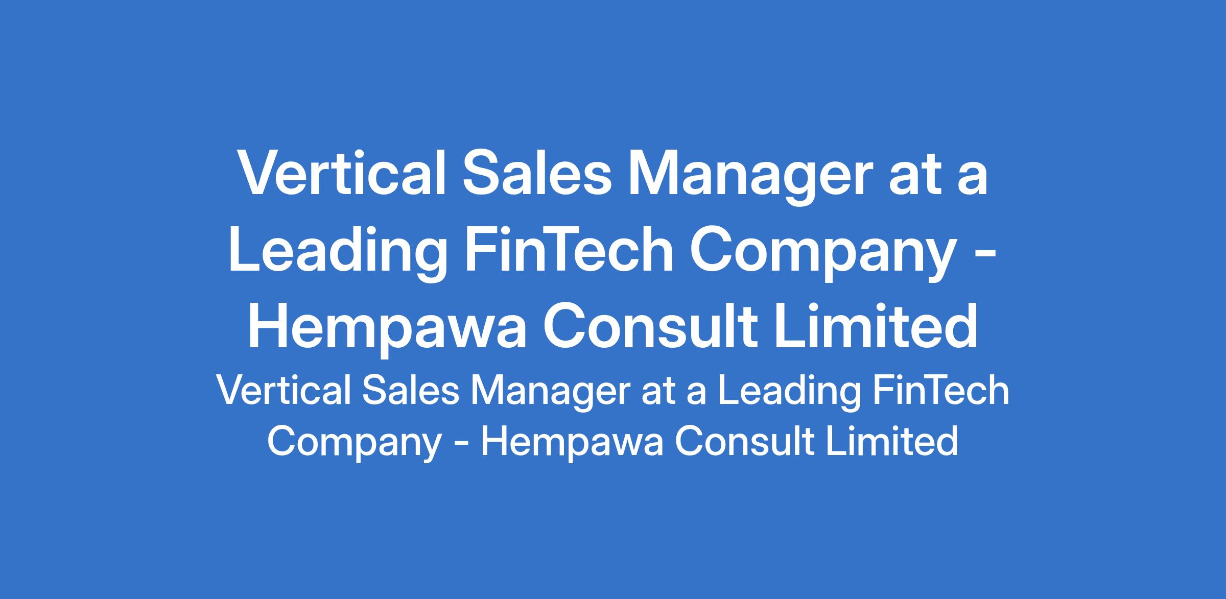 Hempawa Consult Limited - Our client, a leading FinTech Company is recruiting to fill the position of: Vertical Sales Manager. The position is located in Lagos State. Salary: N150,000 - N250,000 monthly. Interested candidates should possess a Bachelors Degree with 3 5 years in sales management, vertical sales, or business development within fintech, tech, or financial services.
