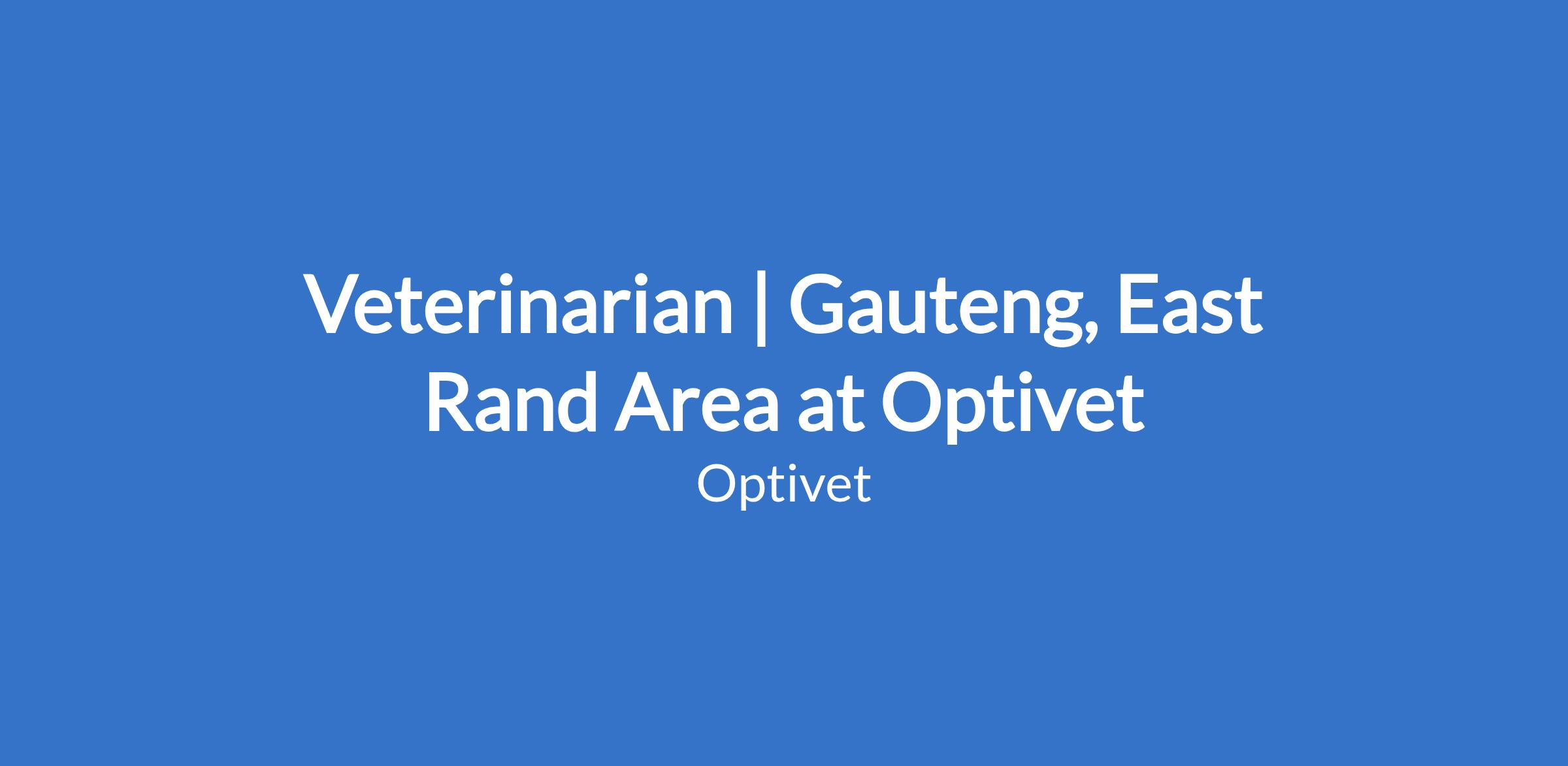 Veterinarian | Gauteng, East Rand Area at Optivet