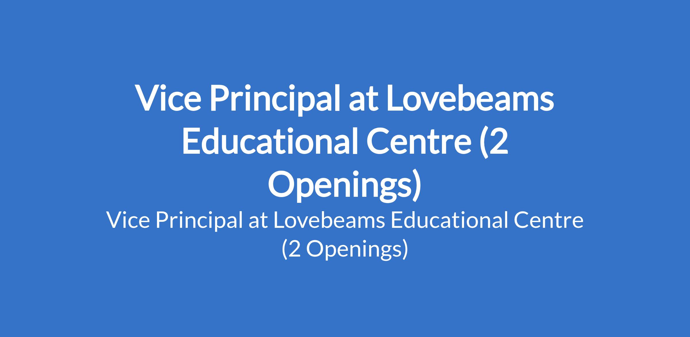 Lovebeams Educational Centre is recruiting to fill the position of: Vice Principal. The position is located on Airport Road, Ajao Estate, Lagos State. Interested candidates should possess a Bachelors Degree in Education or a related field (required), a Masters Degree in Educational Leadership or similar (preferred), with 3+ years of teaching experience.