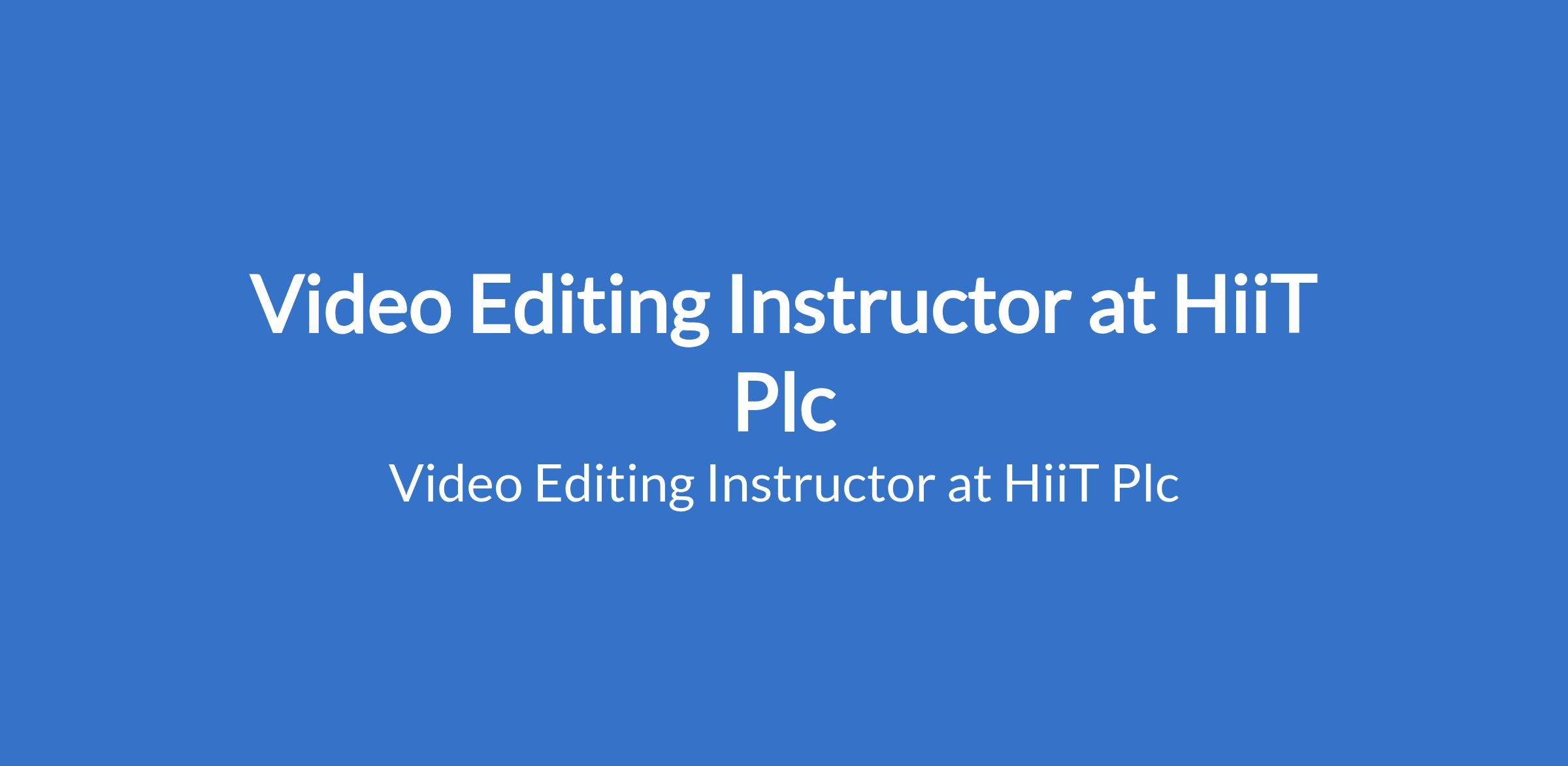 Video Editing Instructor at HiiT Plc