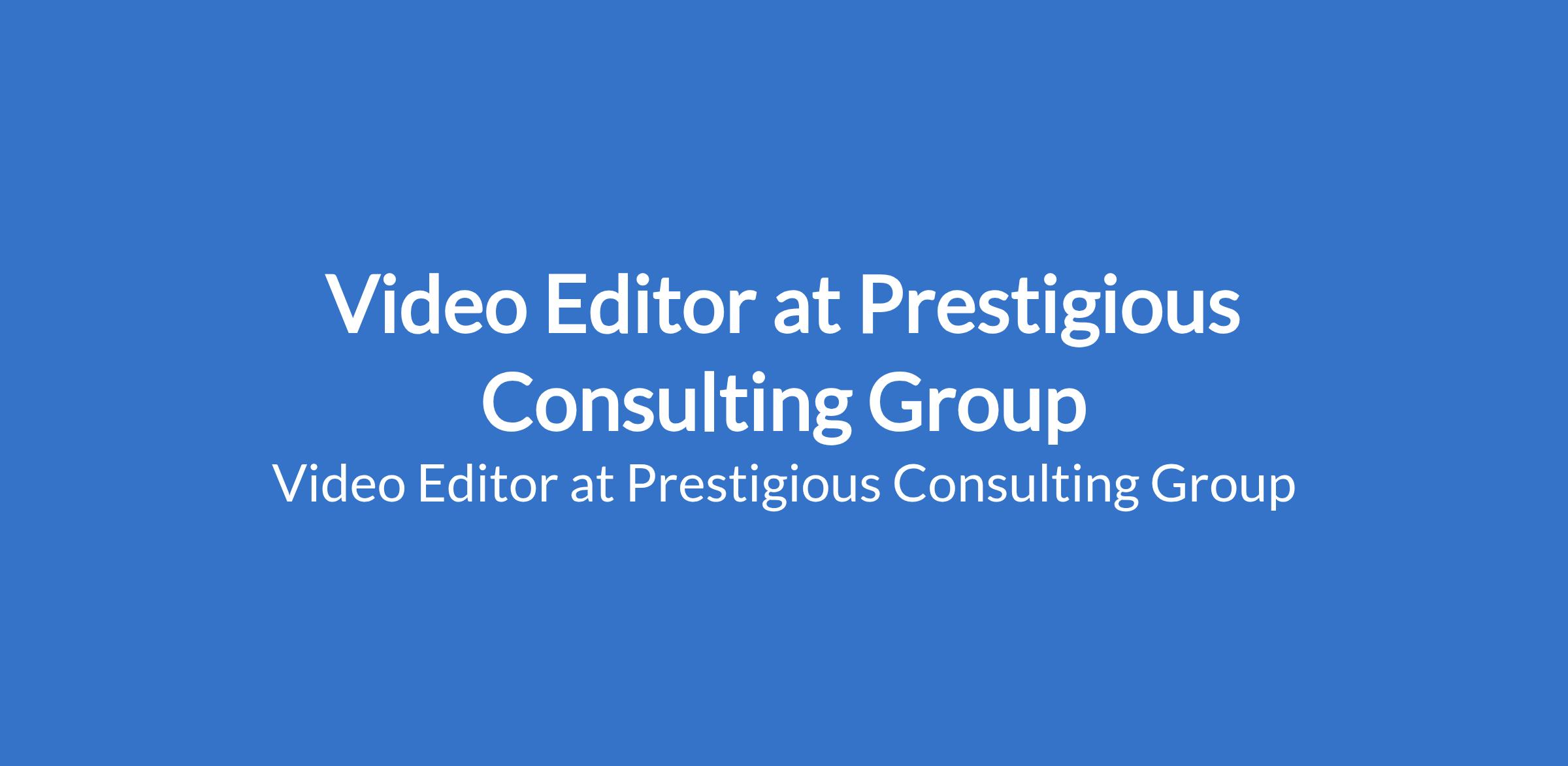 Prestigious Consulting Group is recruiting to fill the position of: Video Editor. The position is located in Ikoyi, Lagos State. Salary: N150,000 / month. Interested candidates should possess relevant qualifications with proven experience as a Video Editor (portfolio required).