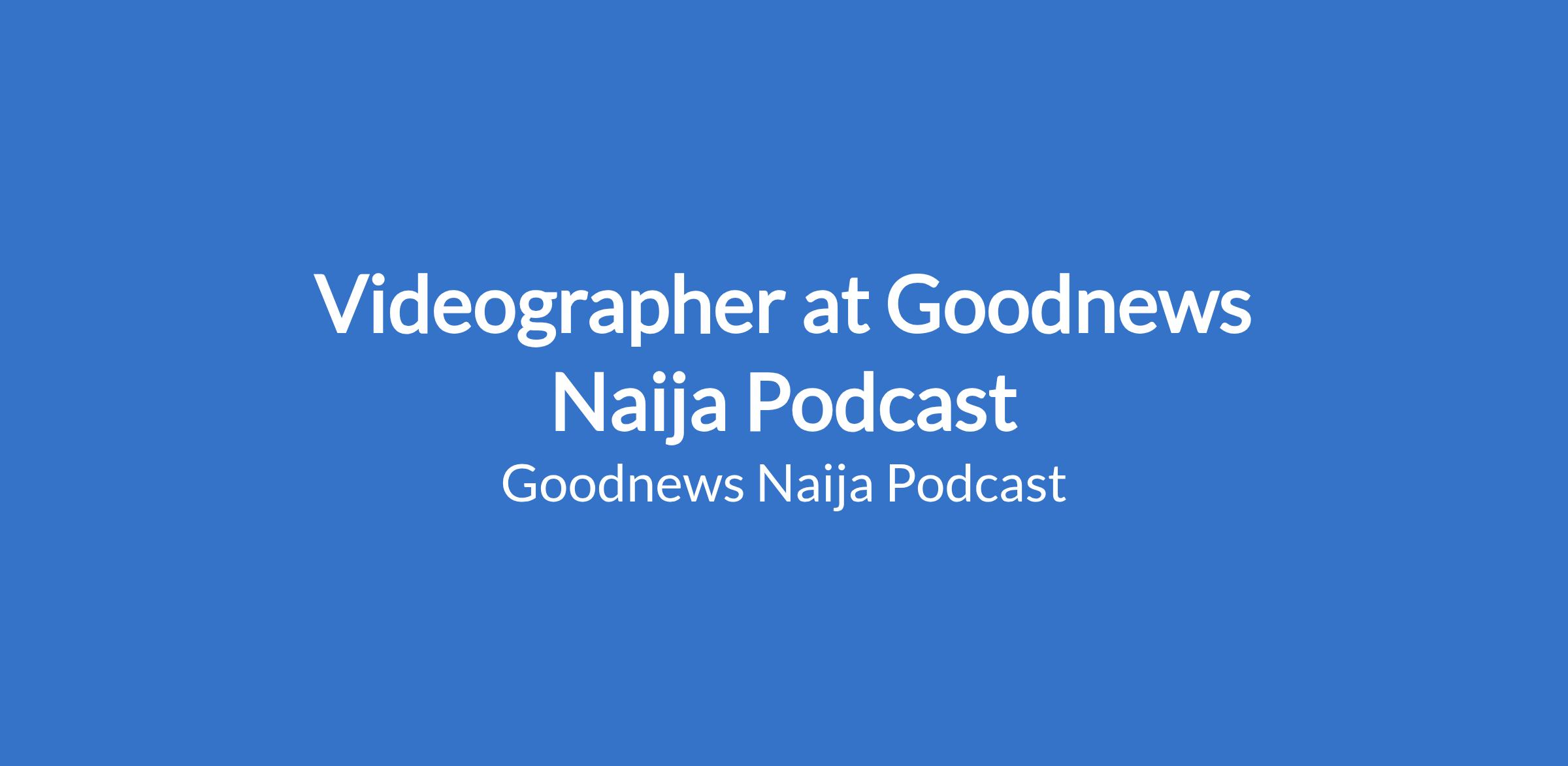Goodnews Naija Podcast is looking for a talented and creative Videographer/Editor to handle the recording and editing of podcast episodes and related content. The ideal candidate will be responsible for capturing high-quality visuals, editing engaging podcast content, and producing videos that align with the brand's inspiring and uplifting message.