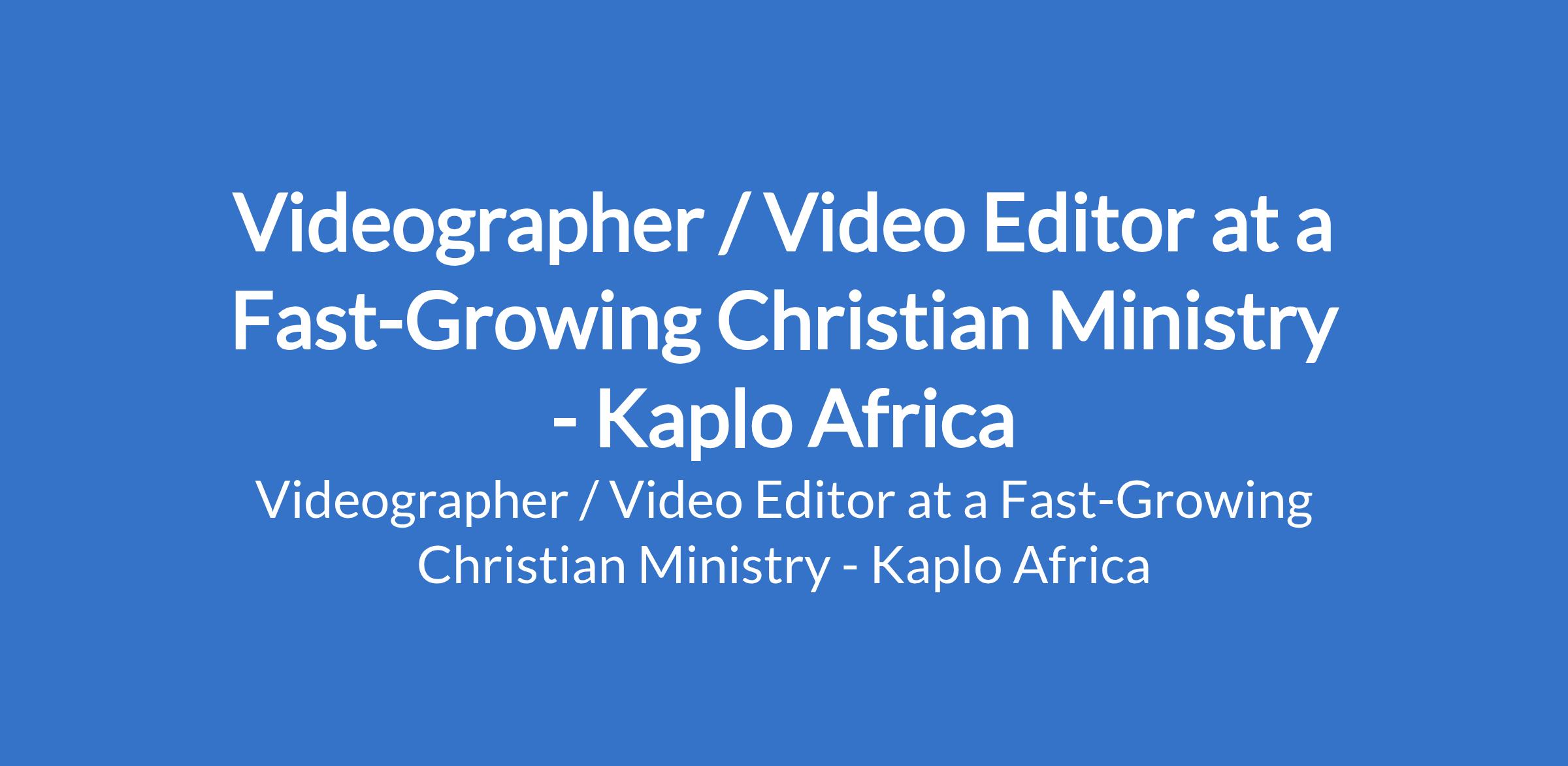 Kaplo Africa - Our client, a fast-Growing Christian Ministry is recruiting to fill the position of: Videographer / Video Editor. The position is located in Abule Egba, Lagos State. Salary: N100,000 monthly. Interested candidates should possess a Bachelors Degree in Mass Communication, Film/Media Studies, Fine Arts, or related fields with 2 3 years of professional experience in videography, video editing, or media production.
