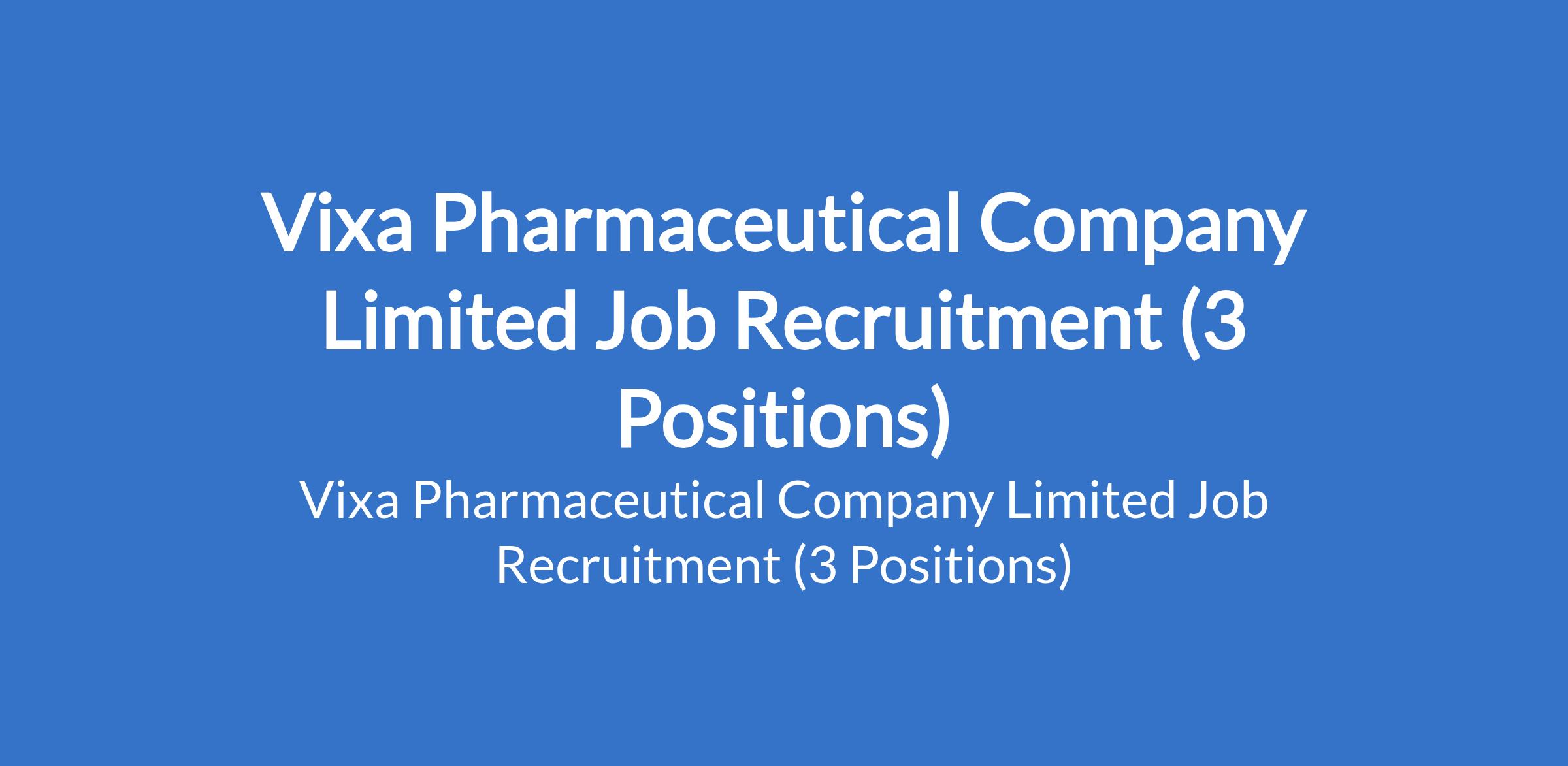 Vixa Pharmaceutical Company Limited Job Recruitment (3 Positions)