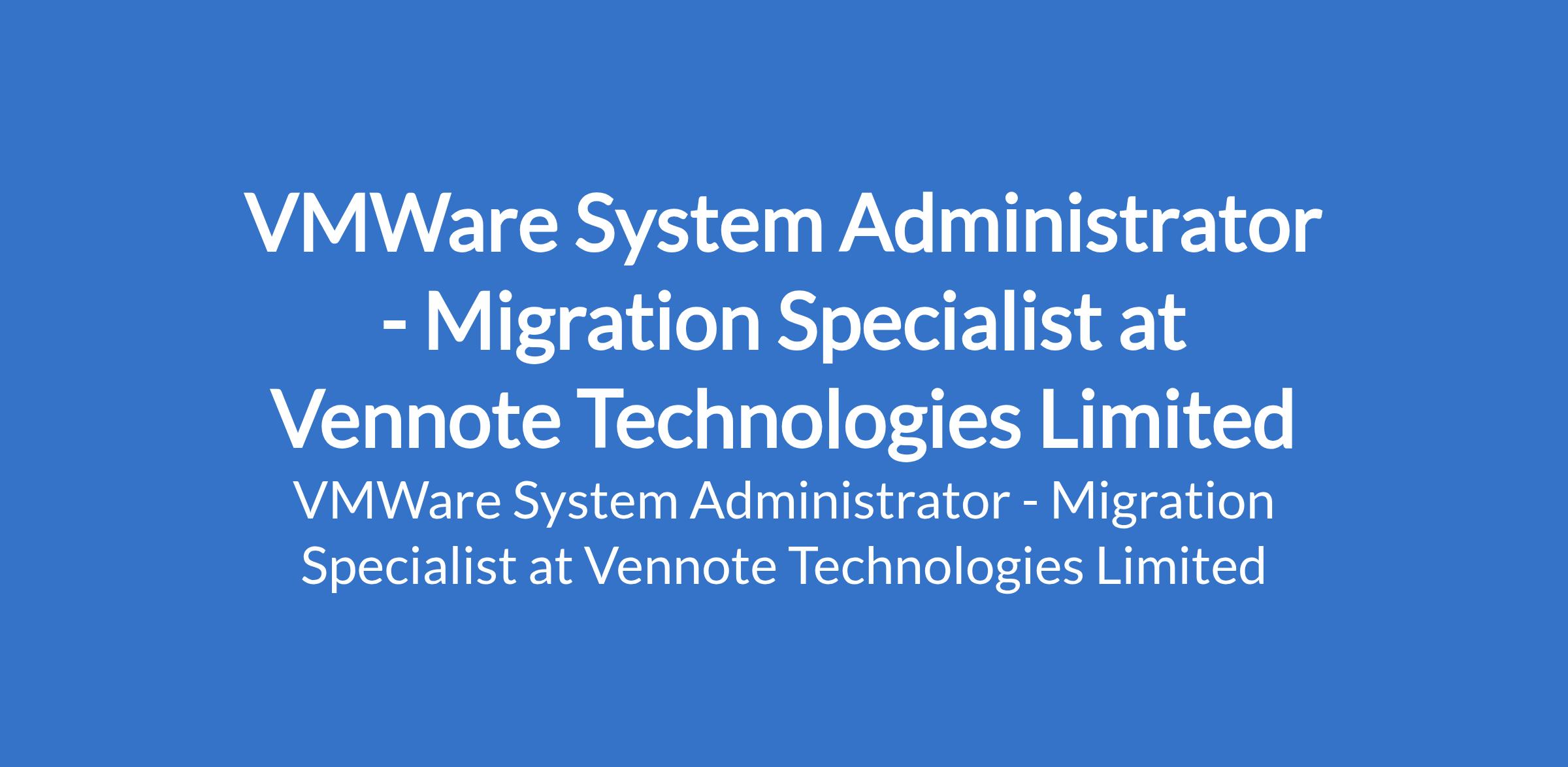 Vennote Technologies Limited is recruiting to fill the position of: VMWare System Administrator - Migration Specialist. The position is located in Lagos State. Interested candidates should possess a Bachelor's Degree / HND with experience with hyper-converged infrastructure (HCI) like vSAN.