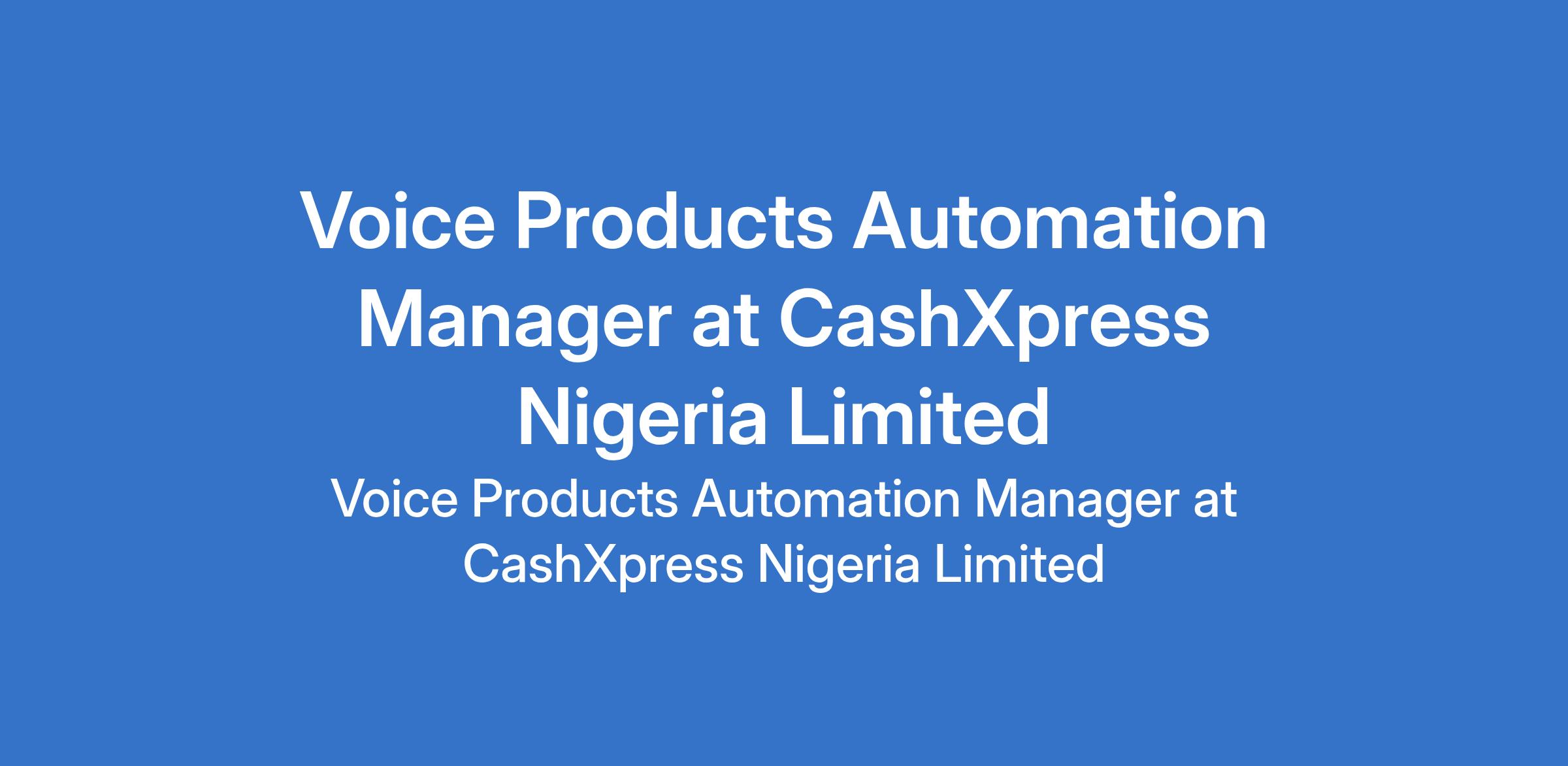 CashXpress Nigeria Limited is recruiting to fill the position of: Voice Products Automation Manager. The position is located in Lagos State. This role is a key role in our company, ensuring that CashX voice bots and interactive voice systems serve our customers while minimizing costs. Interested candidates should possess 2-3 years experience in developing/engineering in the field of voice and chatbot ( Python, JavaScript / TypeScript, Basic SQL, UX Design) with an emphasis on product data analysis.