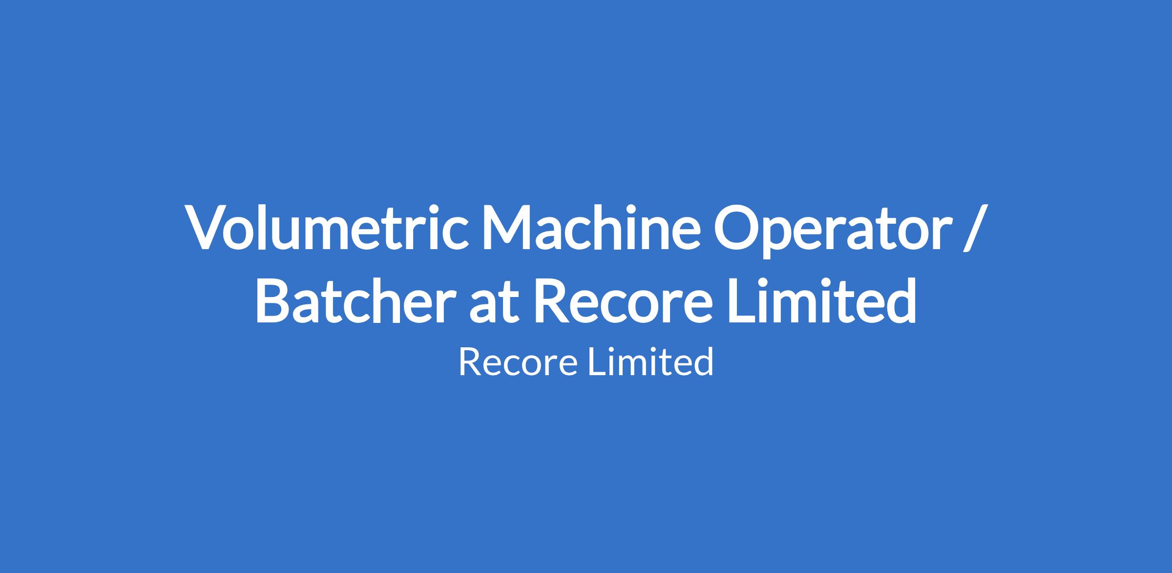 Volumetric Machine Operator / Batcher at Recore Limited