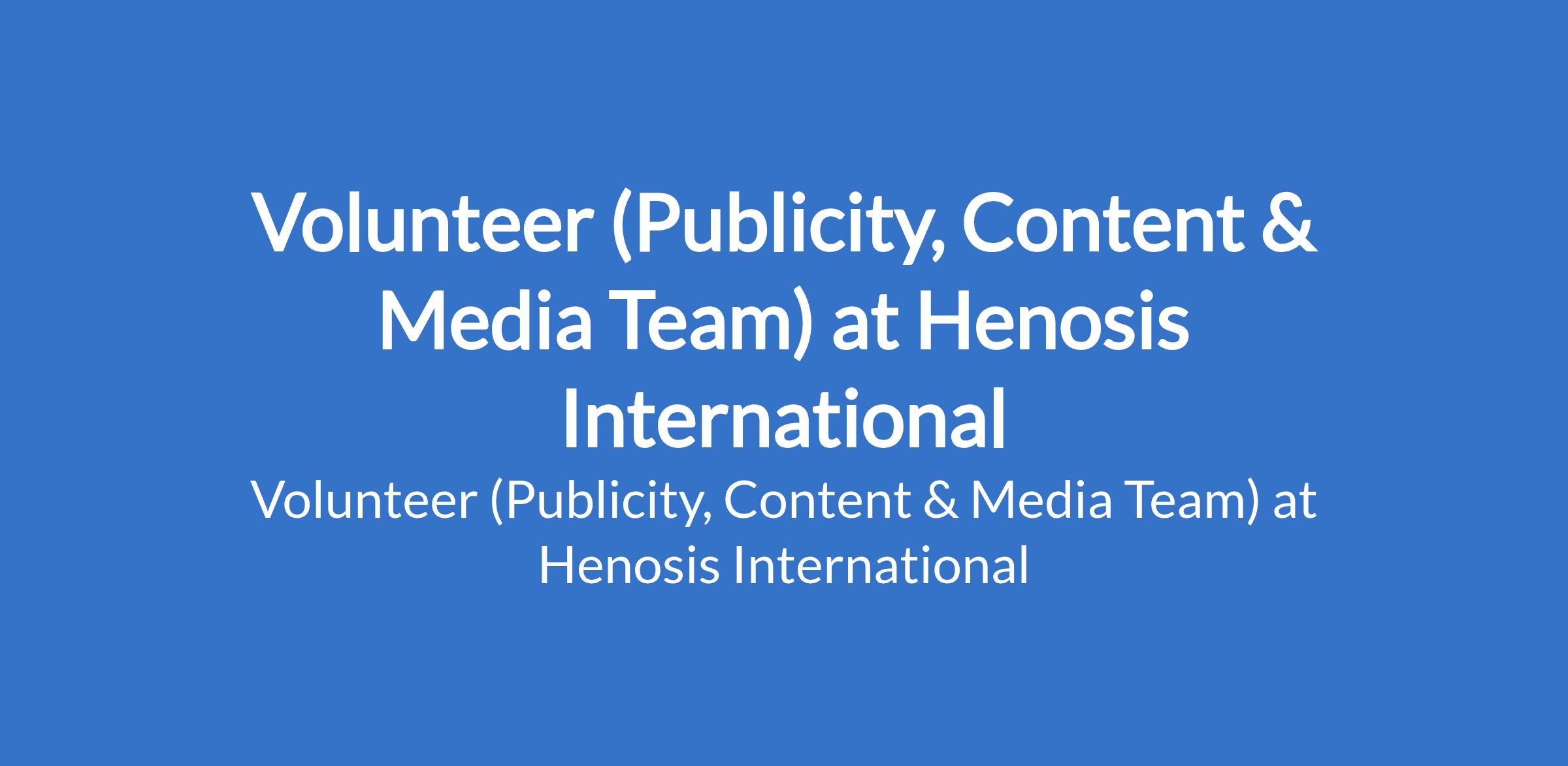 Volunteer (Publicity, Content & Media Team) at Henosis International