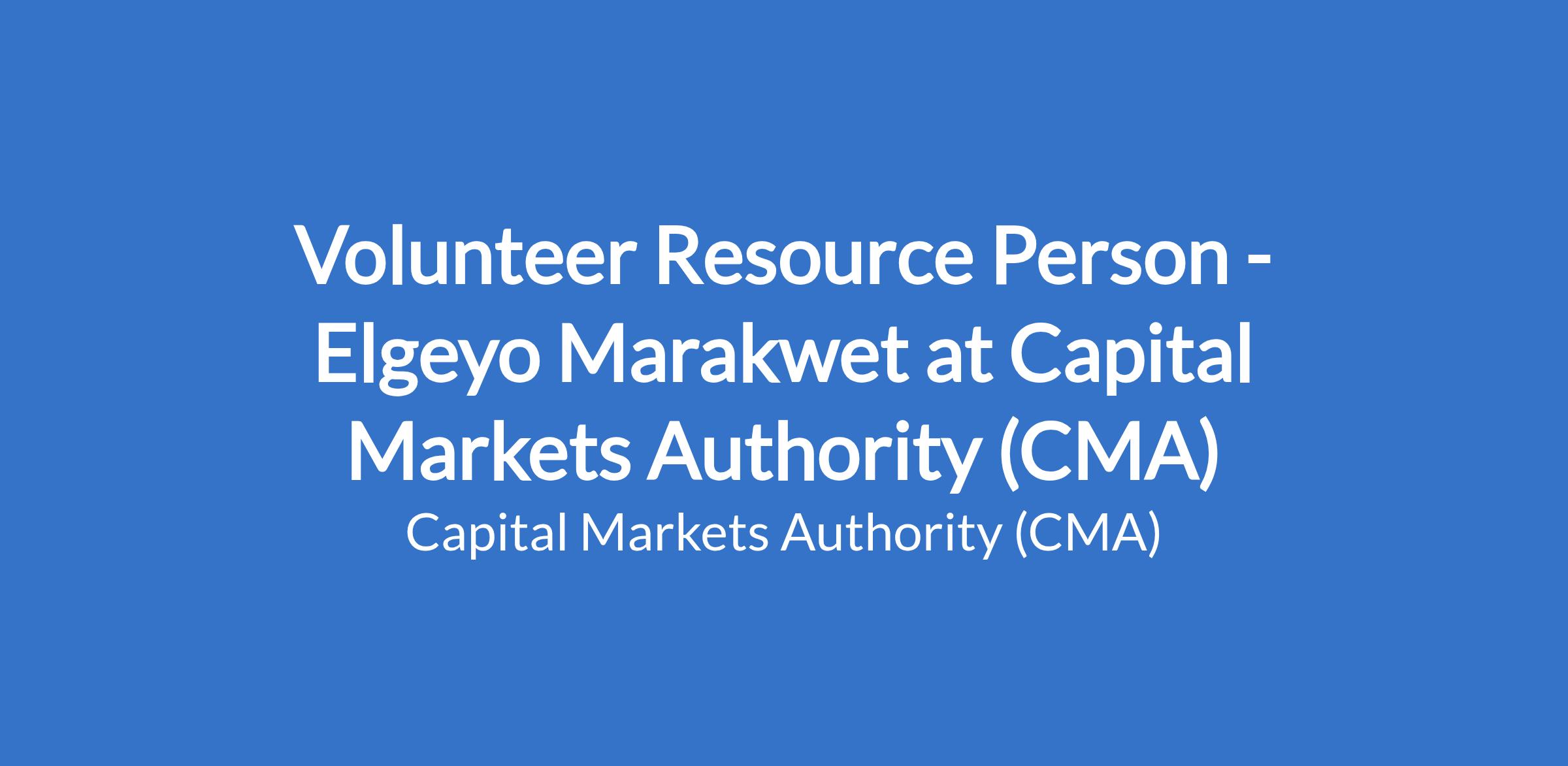 Volunteer Resource Person - Elgeyo Marakwet at Capital Markets Authority (CMA)