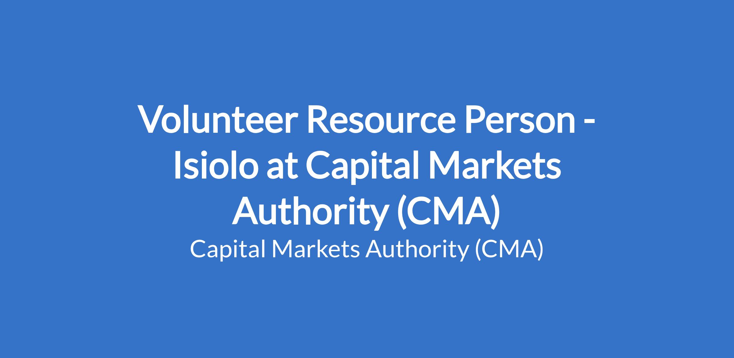 Volunteer Resource Person - Isiolo at Capital Markets Authority (CMA)