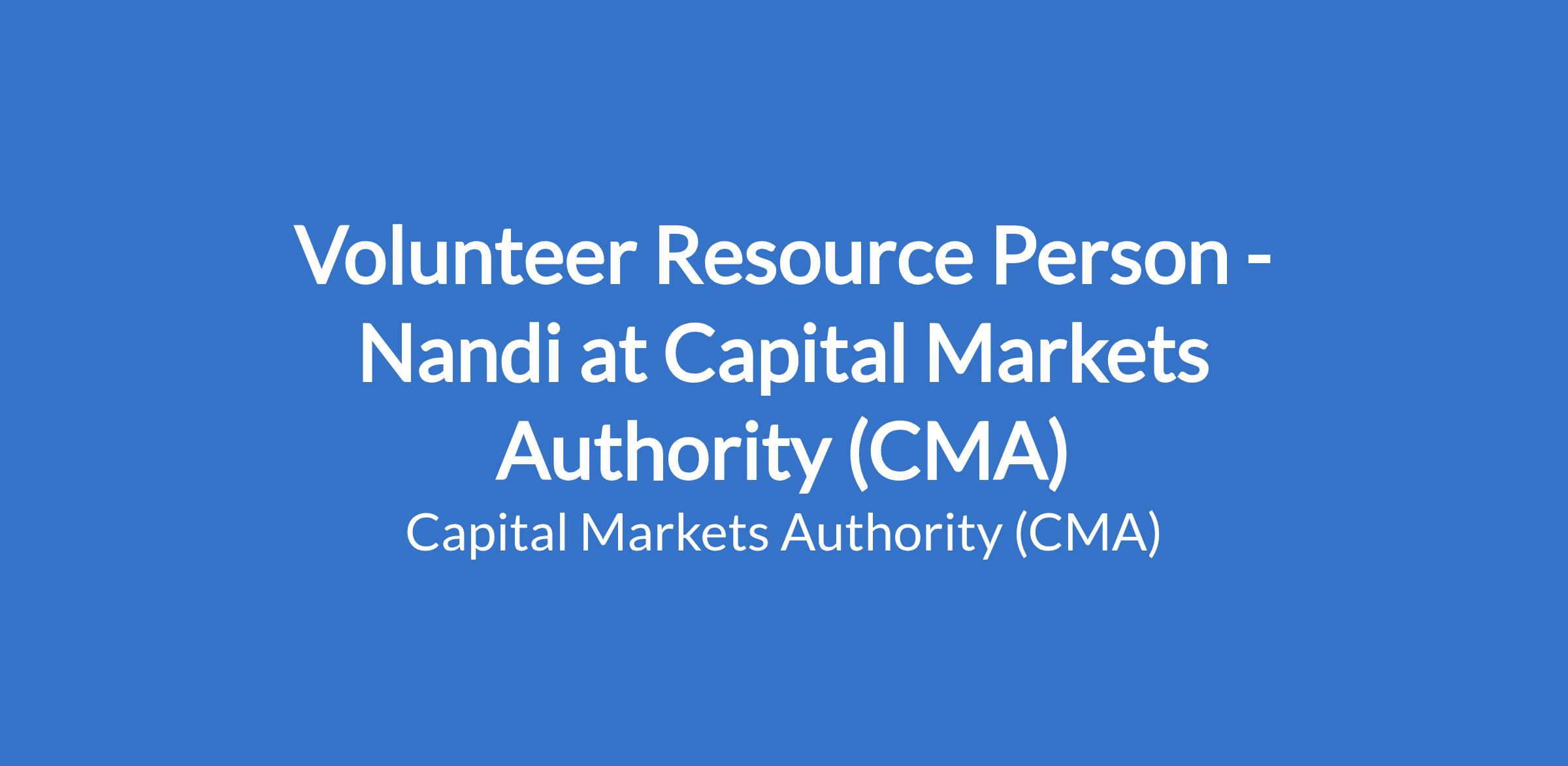 Volunteer Resource Person - Nandi at Capital Markets Authority (CMA)
