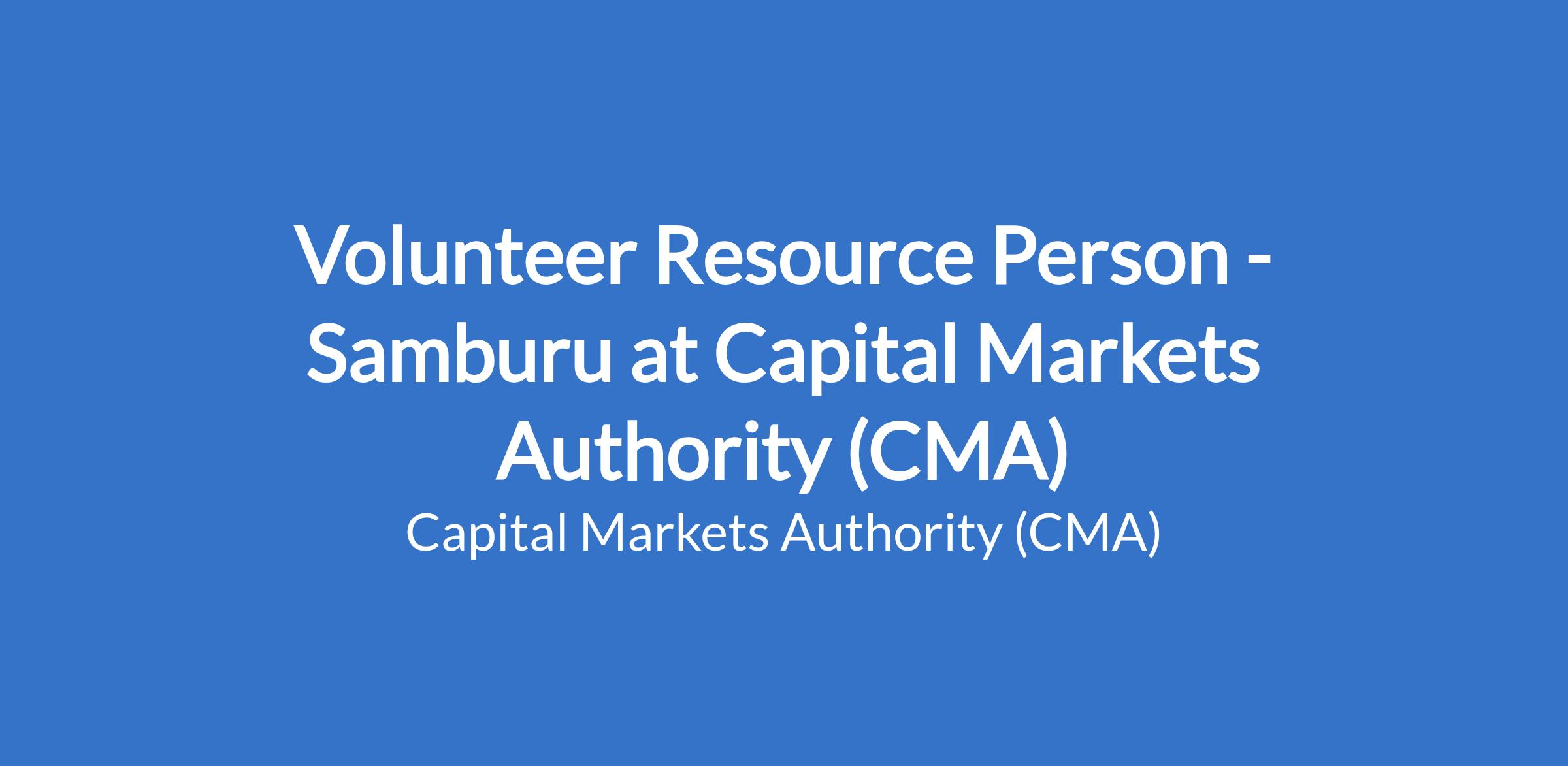 The Capital Markets Authority (CMA) has an exciting opportunity for volunteers to conduct investor education speaking engagements targeting the general public particularly at the County level over a period of twenty-four (24) months on a part time basis. The main objective of this initiative is to increase awareness and participation in the capital markets by effectively engaging the various target groups. This is in line with one of the Capital Markets Authority's mandate to promote investor education and public awareness throughout the Country. A small stipend will be given for each engagement subject to terms and conditions.