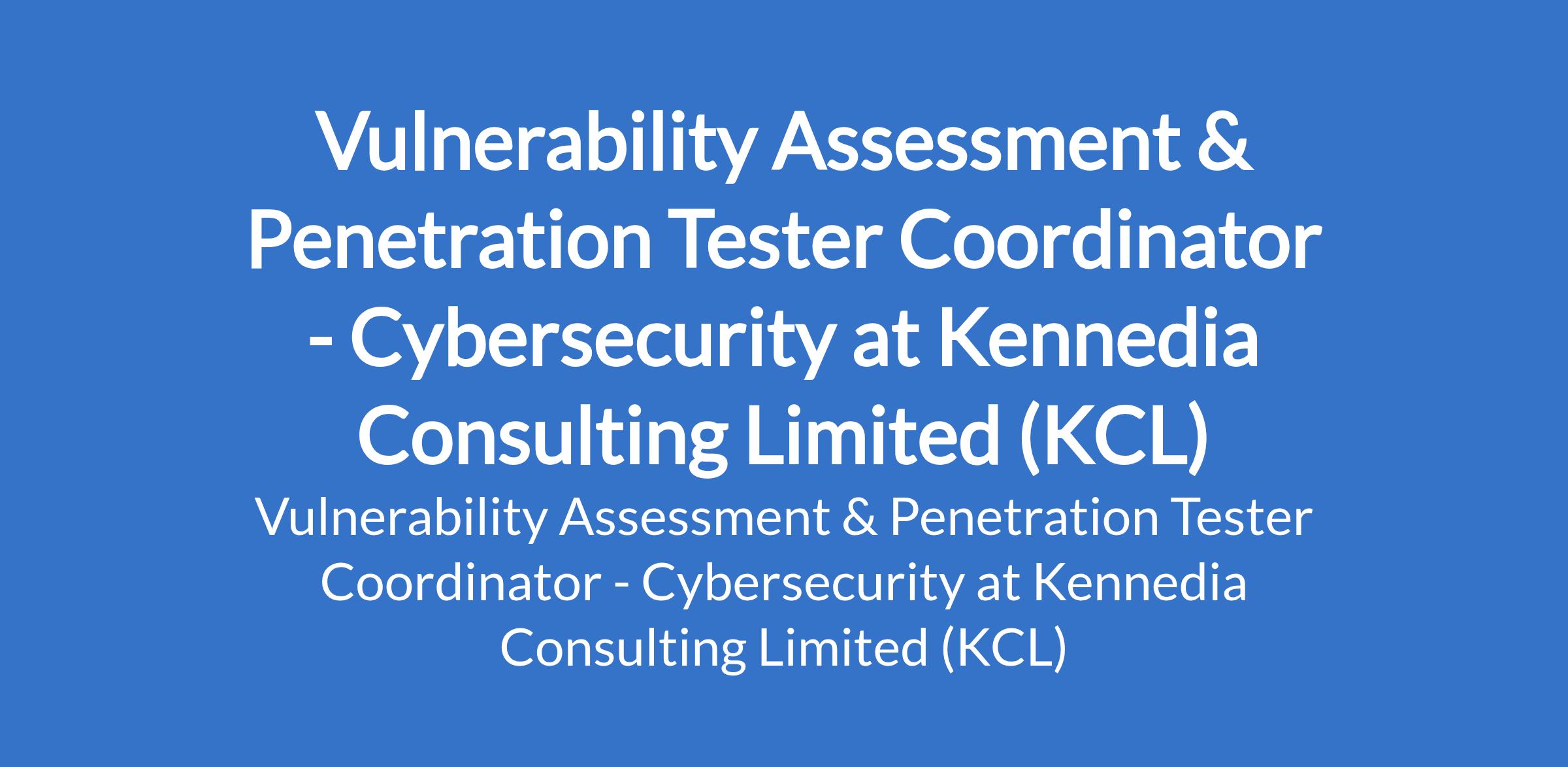 Kennedia Consulting Limited (KCL) is recruiting to fill the position of: Vulnerability Assessment & Penetration Tester Coordinator - Cybersecurity. The position is located in Lagos State. Interested candidates should possess a Bachelors Degree in Computer Science, IT, Cybersecurity, or related fields with 3 - 6 years experience in cybersecurity operations, vulnerability management, or security governance.