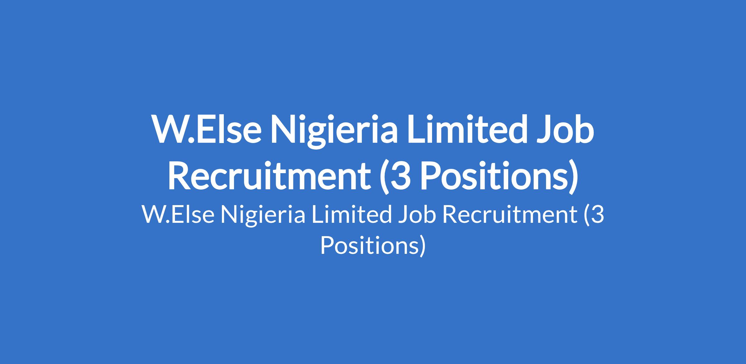 W.Else Nigieria Limited Job Recruitment (3 Positions)