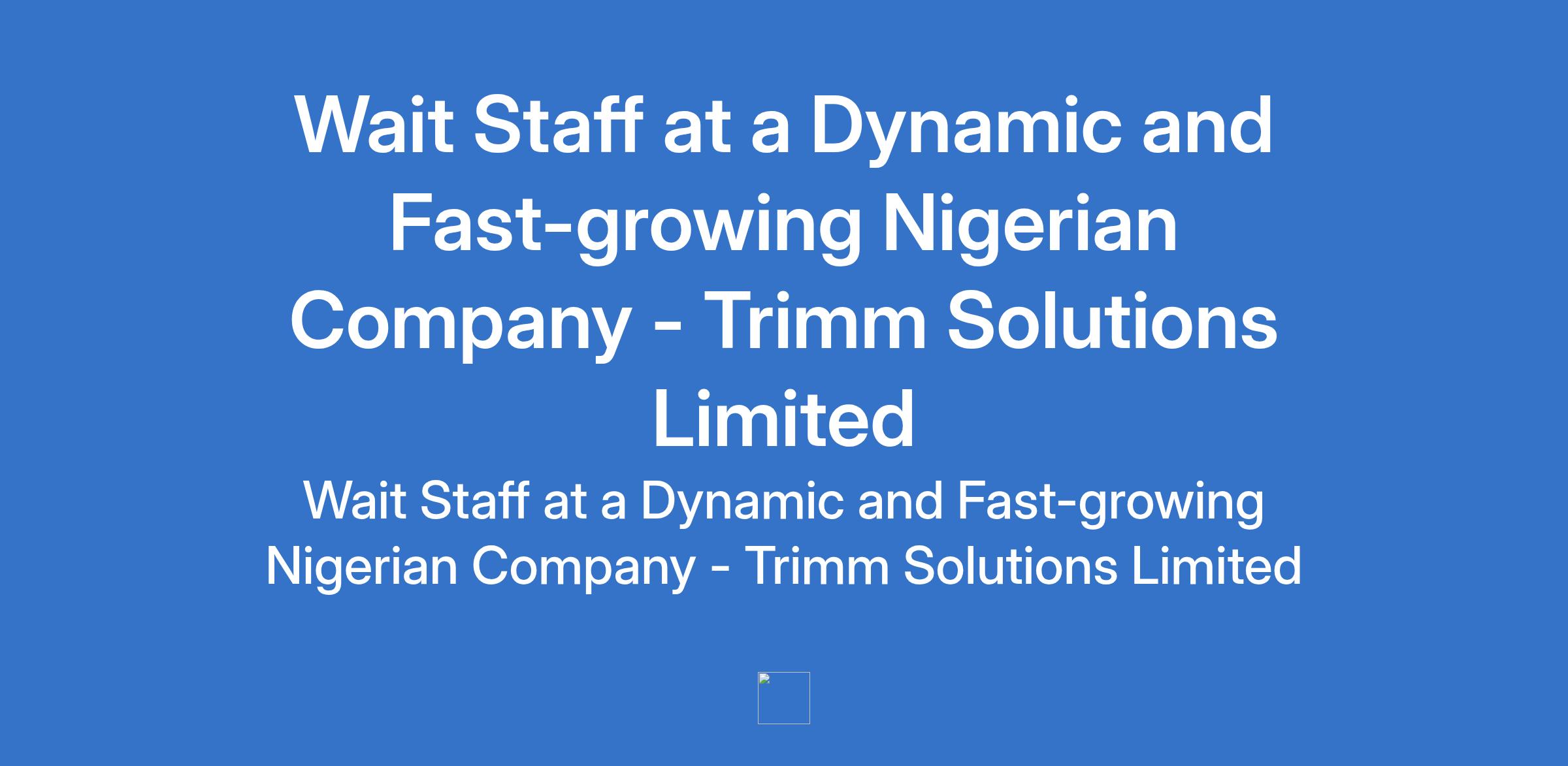 Trimm Solutions Limited - Our client, a dynamic and fast-growing Nigerian company is recruiting to fill the position of: Wait Staff. The position is located in Victoria Island, Lagos State. Salary: N80,000 - N100,000 monthly. Interested candidates should possess relevant qualifications with 2 3 years of experience in a high-end restaurant, luxury hotel, or premium lounge (preferably in VI or Ikoyi).