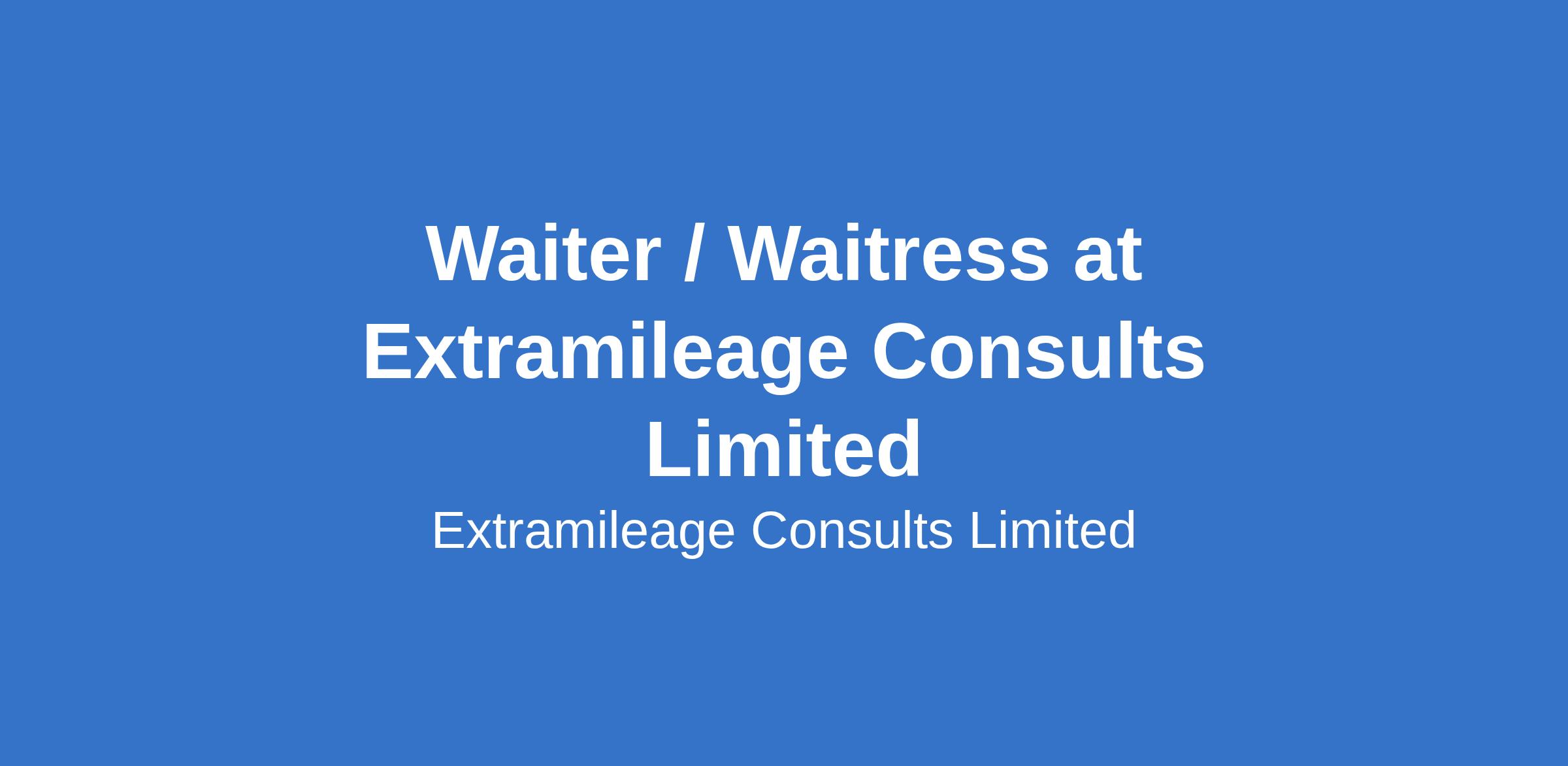 Waiter / Waitress at Extramileage Consults Limited