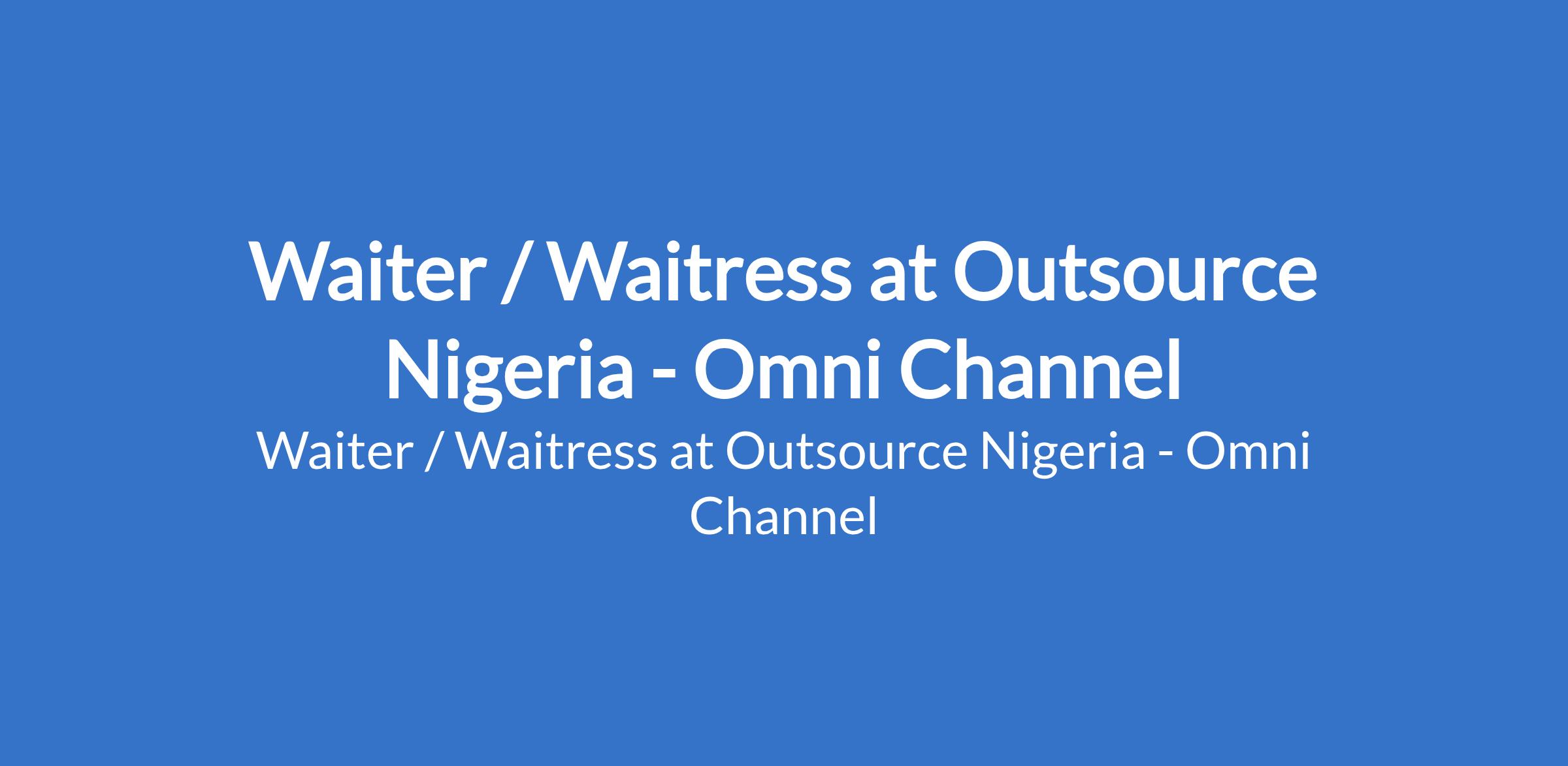 Outsource Nigeria - Omni Channel is recruiting to fill the position of: Waiter / Waitress. The position is located in Surulere, Lagos State. Salary: N60,000 monthly. Interested candidates should possess an SSCE with 0 - 1 year of work experience, and must reside within Surulere, Aguda, Lawanson, or nearby environs.