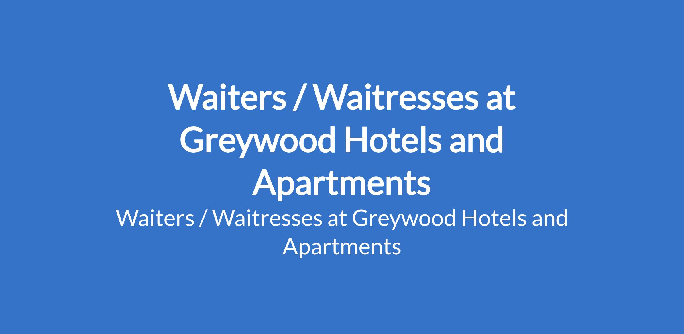 Waiters / Waitresses at Greywood Hotels and Apartments
