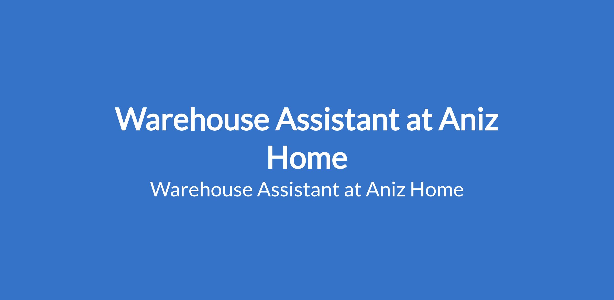 Warehouse Assistant at Aniz Home