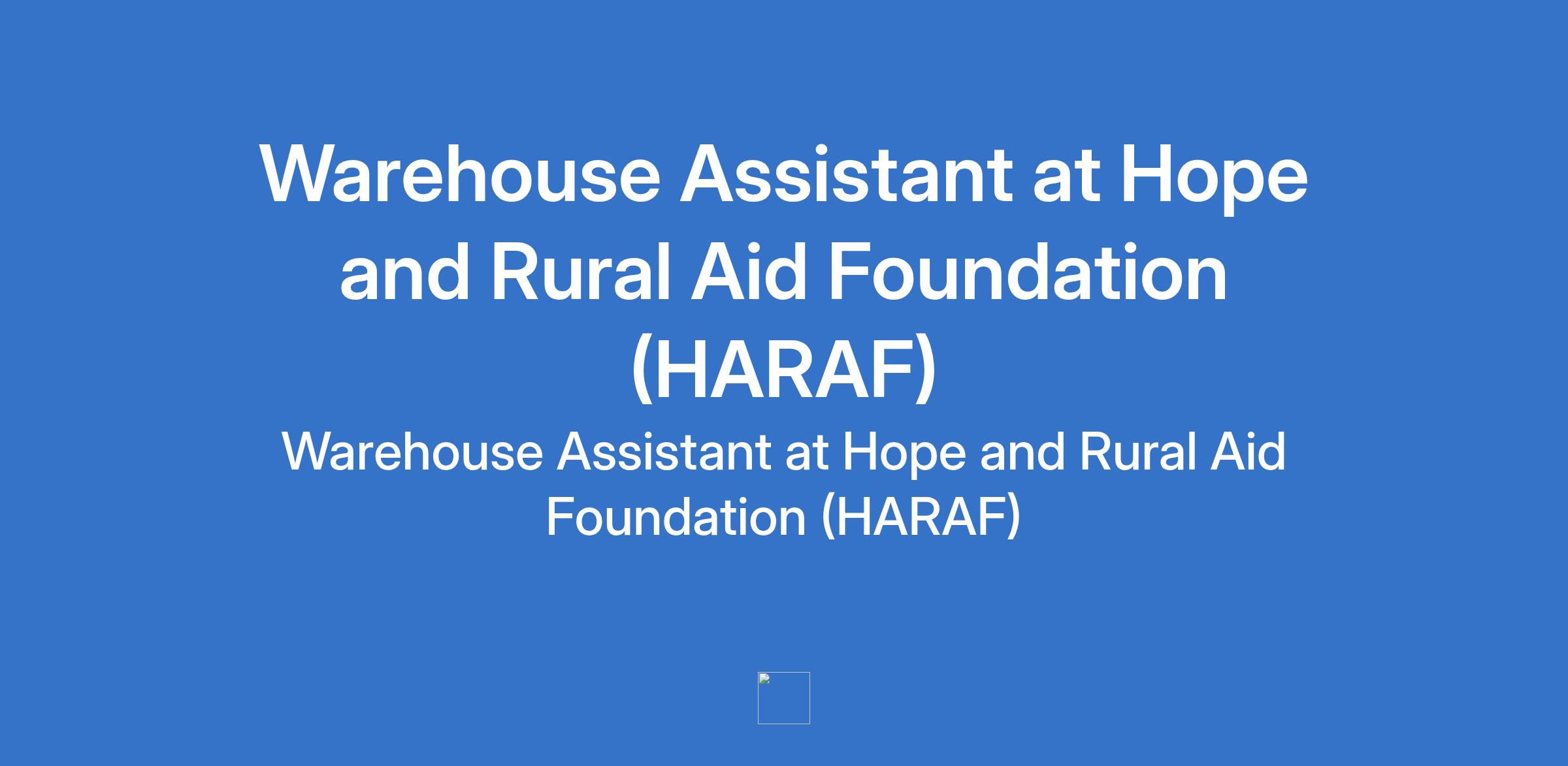 Warehouse Assistant at Hope and Rural Aid Foundation (HARAF)