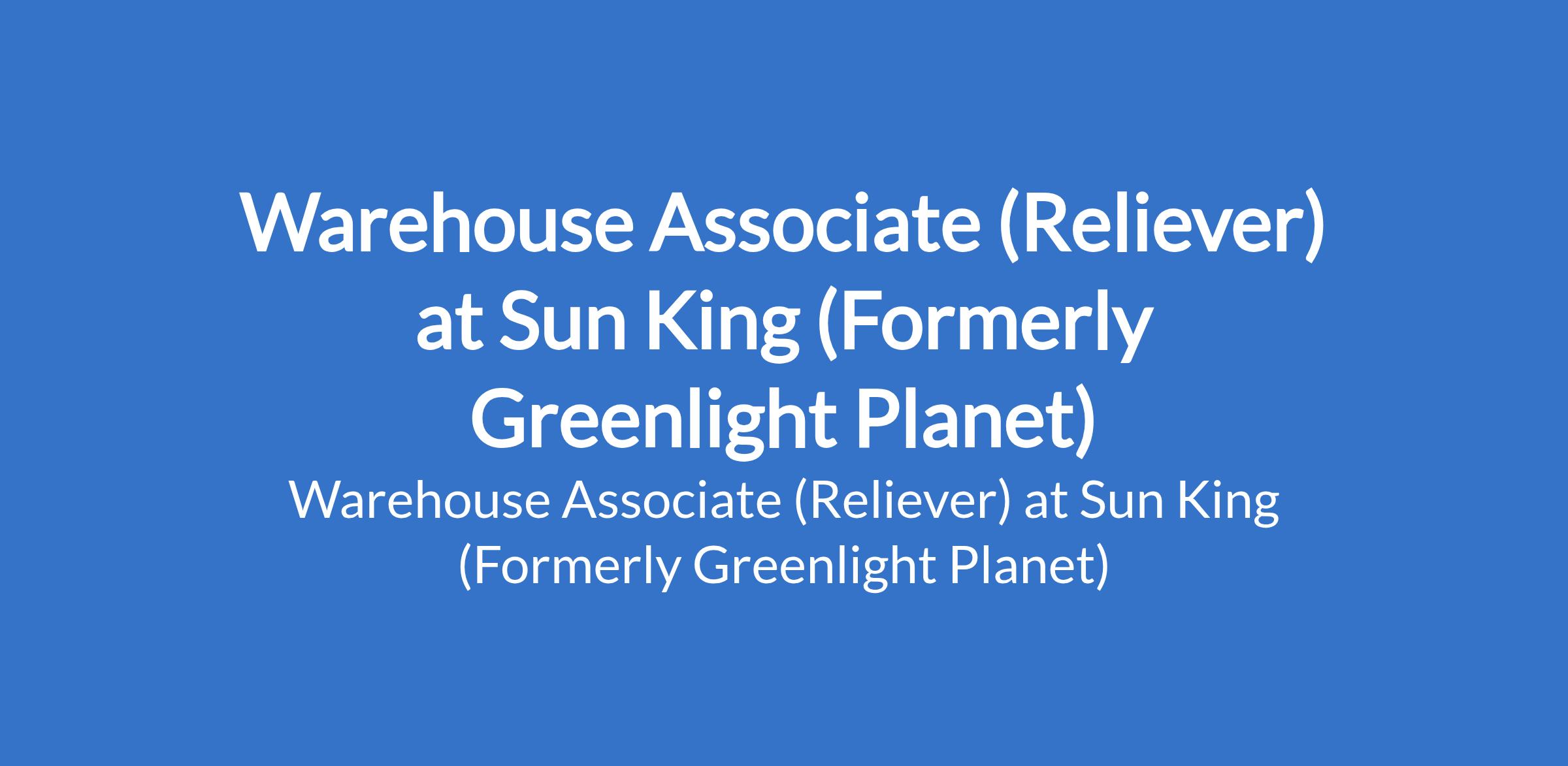 Sun King (Formerly Greenlight Planet) is recruiting to fill the position of: Warehouse Associate (Reliever). The position is located in Kano State. Interested candidates should possess minimum of a BSc or HND in Supply Chain or its equivalent in related disciplines with at least 1 year experience in inventory management.