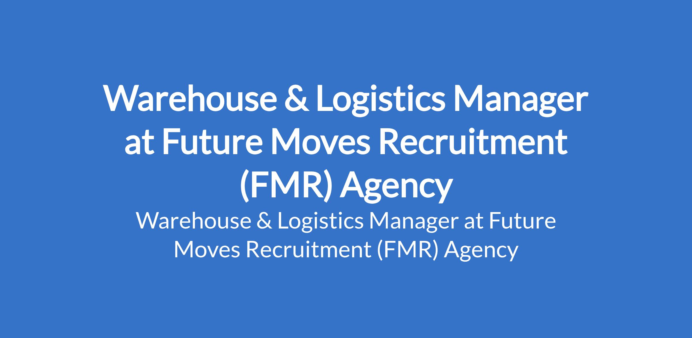 Future Moves Recruitment (FMR) Agency is recruiting to fill the position of: Warehouse & Logistics Manager. The position is located in Jabi, Abuja (FCT). Salary: N80,000 monthly. Interested candidates should possess an OND qualification with 0-1 year experience.