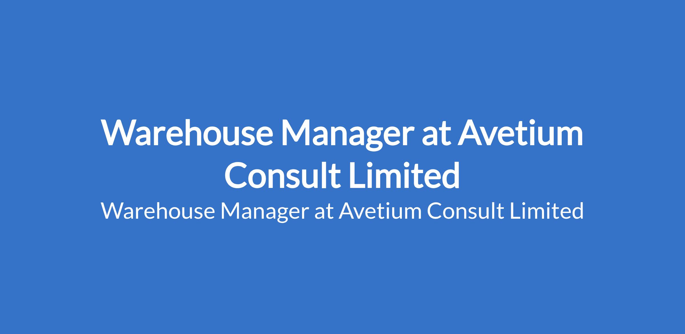 Avetium Consult Limited is recruiting to fill the position of: Warehouse Manager. The position is located in Lagos State. Interested candidates should possess relevant qualifications with 7 - 10 years of relevant experience in warehouse operations, logistics, or inventory management is typical.