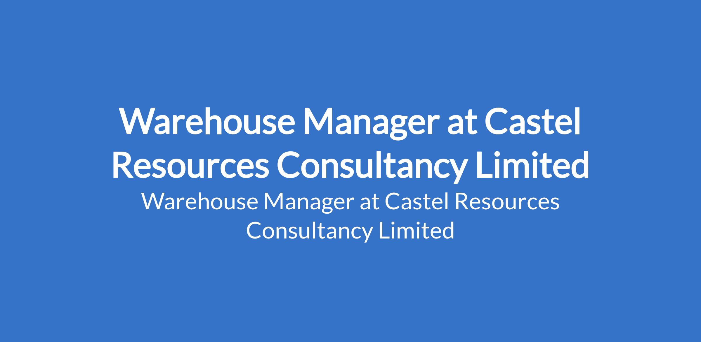 Castel Resources Consultancy Limited is recruiting to fill the position of: Warehouse Manager. The position is located in Port Harcourt, Rivers State. Interested candidates should possess an OND/HND/BSc in Logistics or related field with 25 years experience.