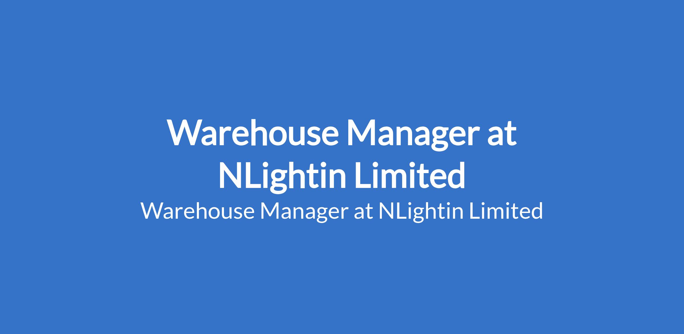 NLightin Limited is recruiting to fill the position of: Warehouse Manager. The position is located in Lagos State. Interested candidates should possess an OND / HND / B.Sc in Supply Chain, Logistics, Business Administration, or related field with proven experience as a Warehouse Manager or Supervisor.