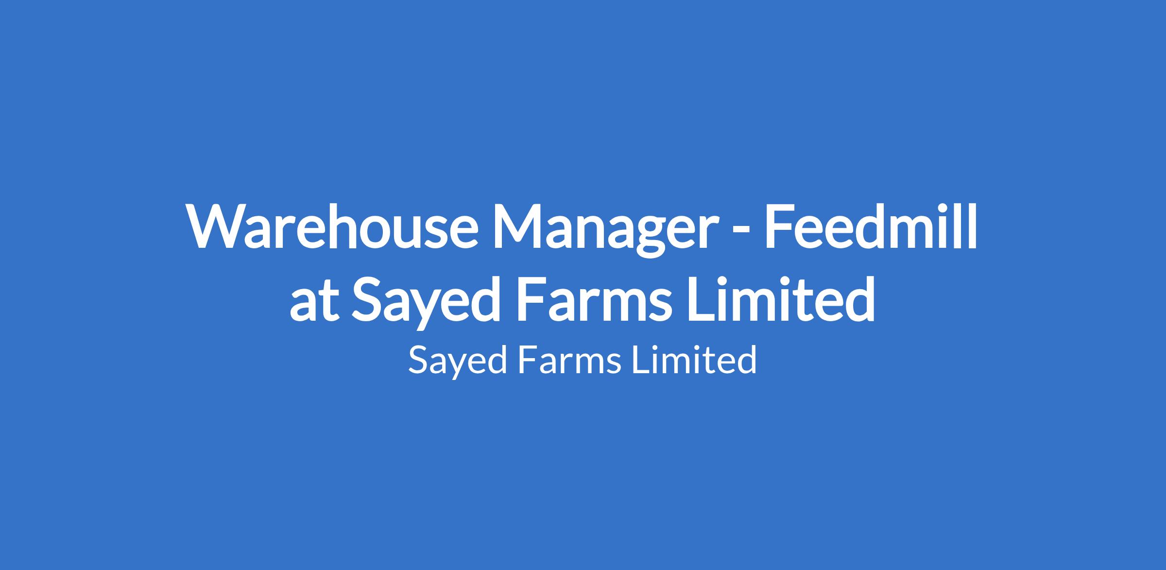 To manage and oversee all warehouse operations within the feed mill, ensuring efficient storage, inventory control, and timely movement of raw materials and finished products while maintaining accuracy, cost efficiency, and compliance with safety and quality standards.