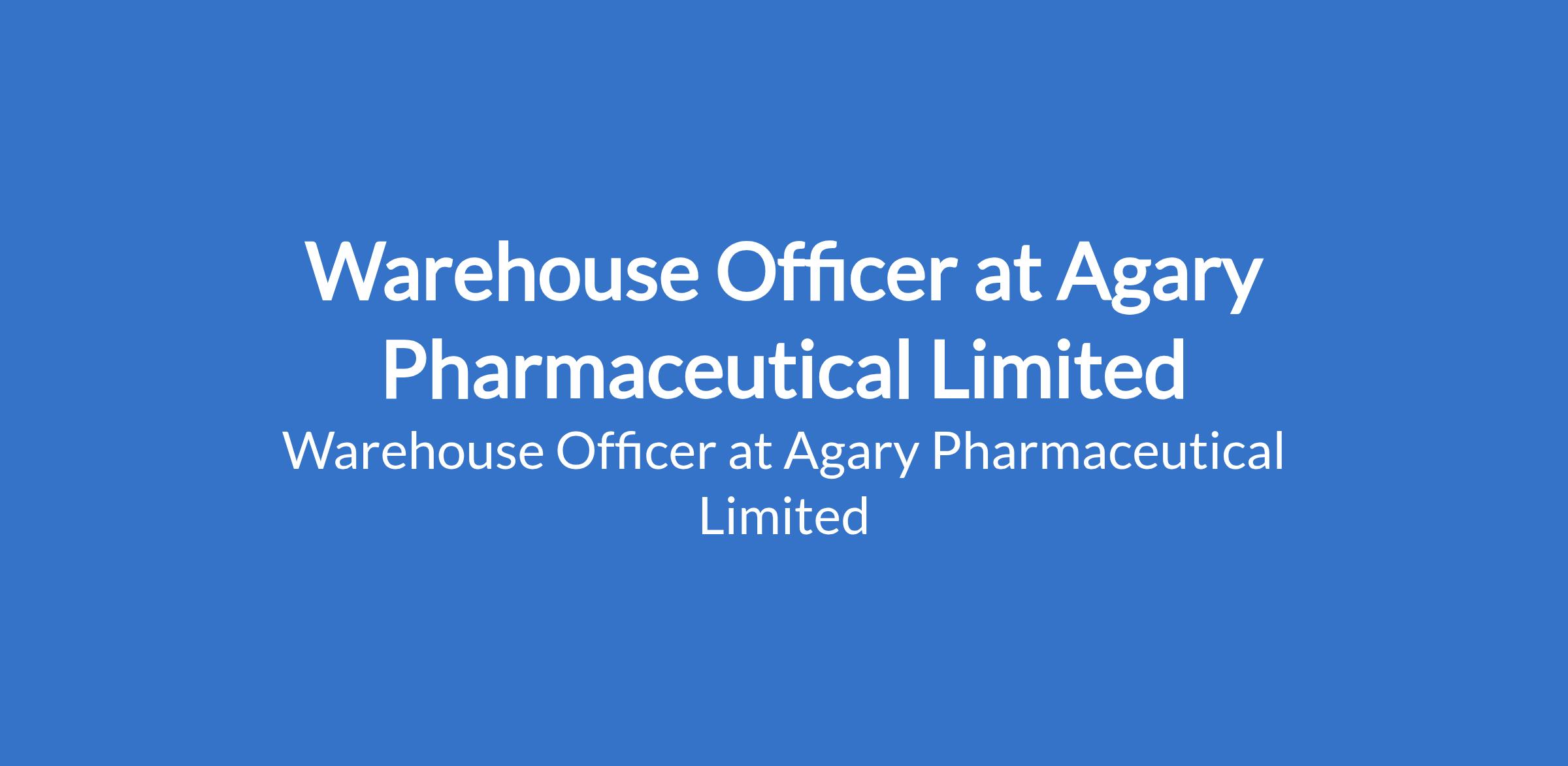 Agary Pharmaceutical Limited is recruiting to fill the position of: Warehouse Officer. The position is located in Amuwo-Odofin, Lagos State. Interested candidates should possess a Bachelors Degree or HND qualification in Logistics, Supply Chain Management, Business Administration, or related field with 3-5 years of experience in warehouse or inventory management.