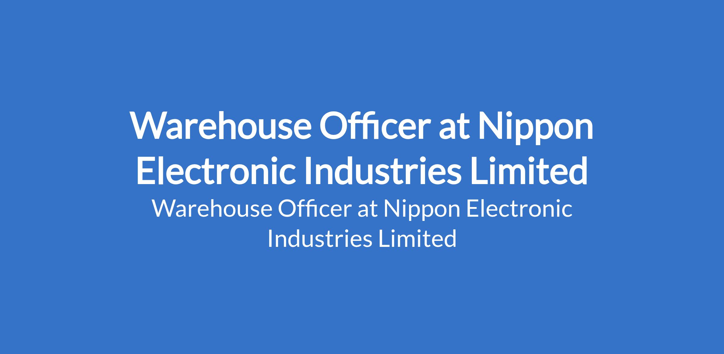 Nippon Electronic Industries Limited is recruiting to fill the position of: Warehouse Officer. The position is located in Lagos State. Salary: N150,000 - N170,000 monthly. Interested candidates should possess an HND / B.Sc Degree in relevant disciplines.