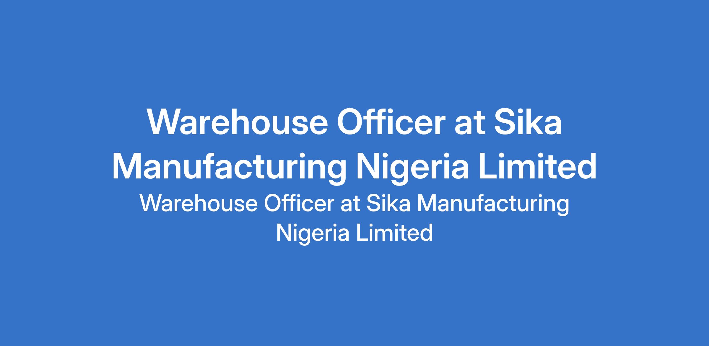 Sika Manufacturing Nigeria Limited is recruiting to fill the position of: Warehouse Officer. The position is located in Abuja (FCT). Interested candidates should possess a B.Sc Degree / HND in any relevant field with a minimum of 3 years experience in a similar role.