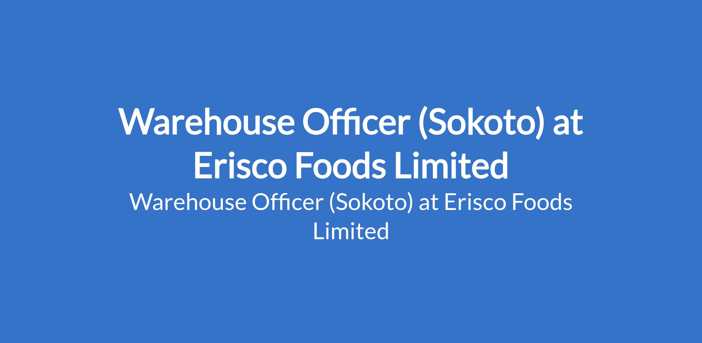 Erisco Foods Limited is recruiting to fill the position of: Warehouse Officer. The position is located in Sokoto State. The ideal candidate will be responsible for managing warehouse operations, ensuring efficient inventory control, proper documentation, and timely dispatch of goods. Interested candidates should possess minimum of an OND or equivalent in Logistics, Business Administration, or related field with at least 2 years of relevant experience in a warehouse or inventory management role, and must reside in or within Sokoto.