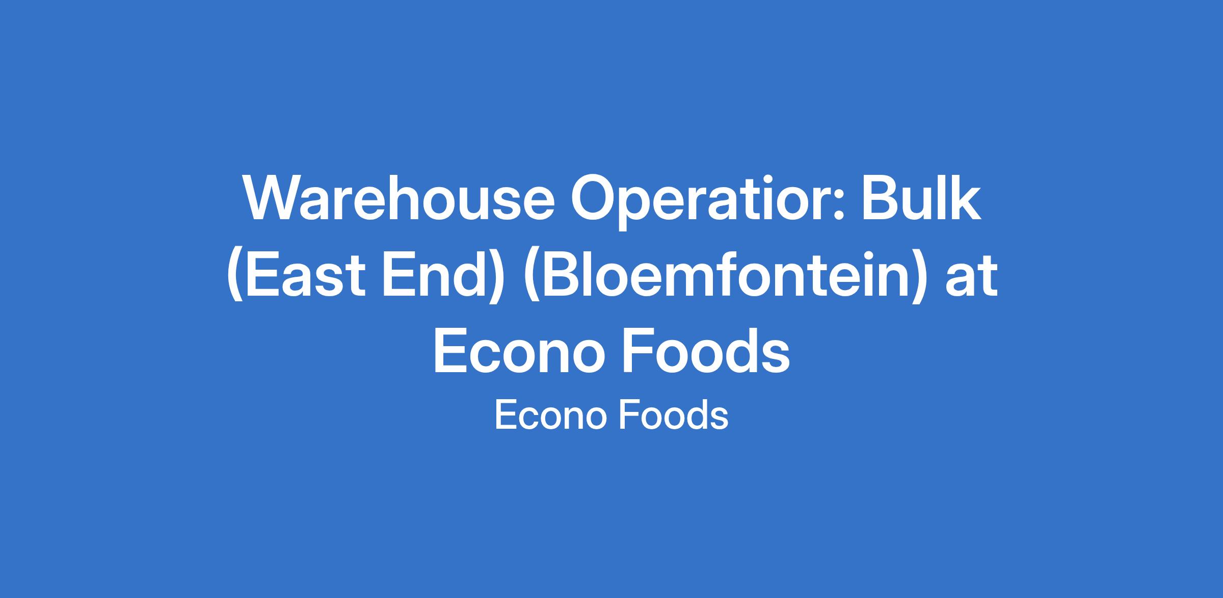 Warehouse Operatior: Bulk (East End) (Bloemfontein) at Econo Foods