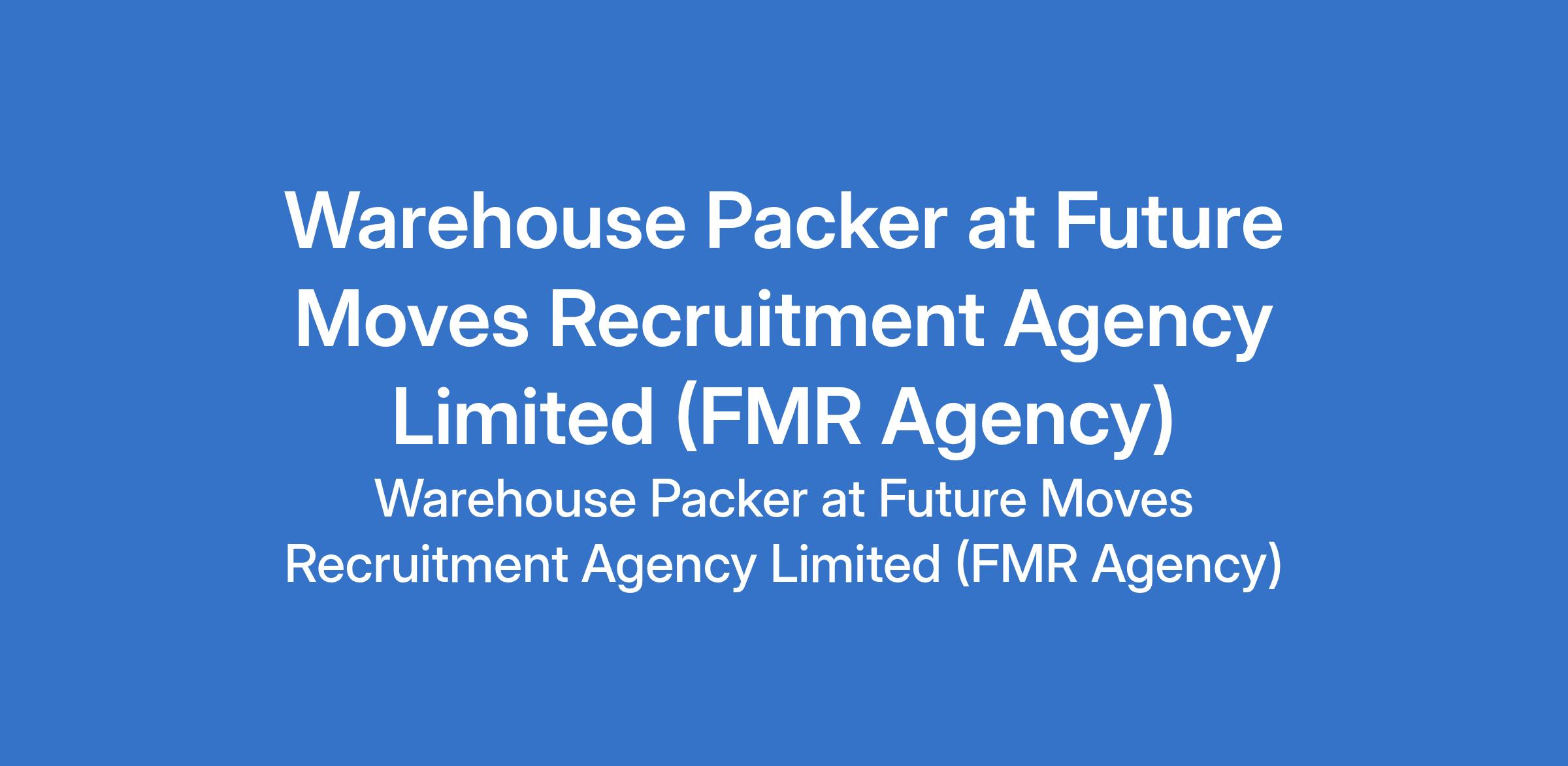 Future Moves Recruitment Agency Limited (FMR Agency) is recruiting to fill the position of: Warehouse Packer. The position is located in Ajao Estate, Lagos State. Salary: N100,000 monthly. Interested candidates should possess minimum of an SSCE qualification.