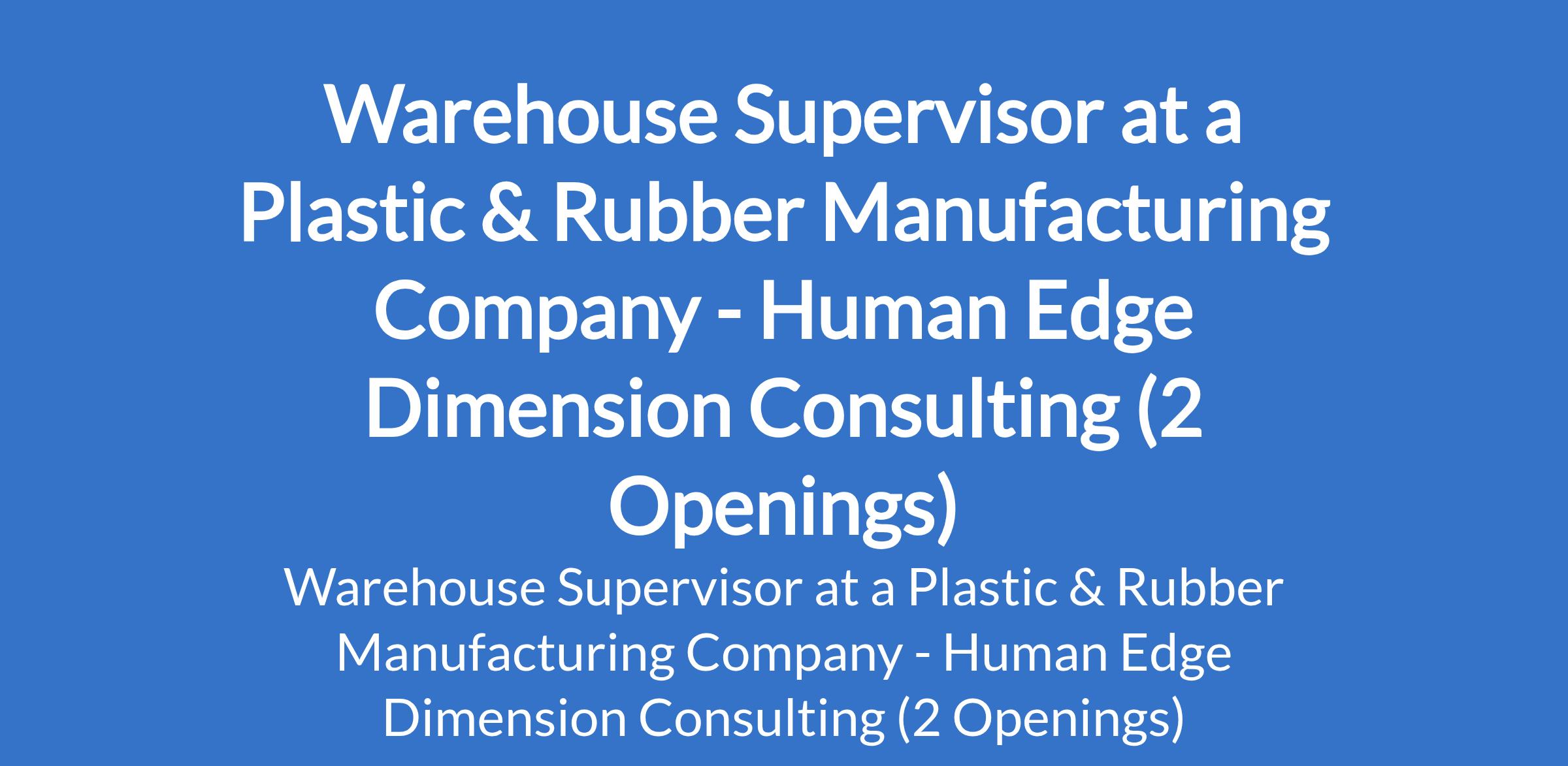 Human Edge Dimension Consulting - Our client, a plastic & rubber manufacturing company is recruiting to fill the position of: Warehouse Supervisor. The position is located in Surulere, Lagos State. Interested candidates should possess an HND / B.Sc Degree in Logistics / Warehouse Management / Supply Chain or any related course.