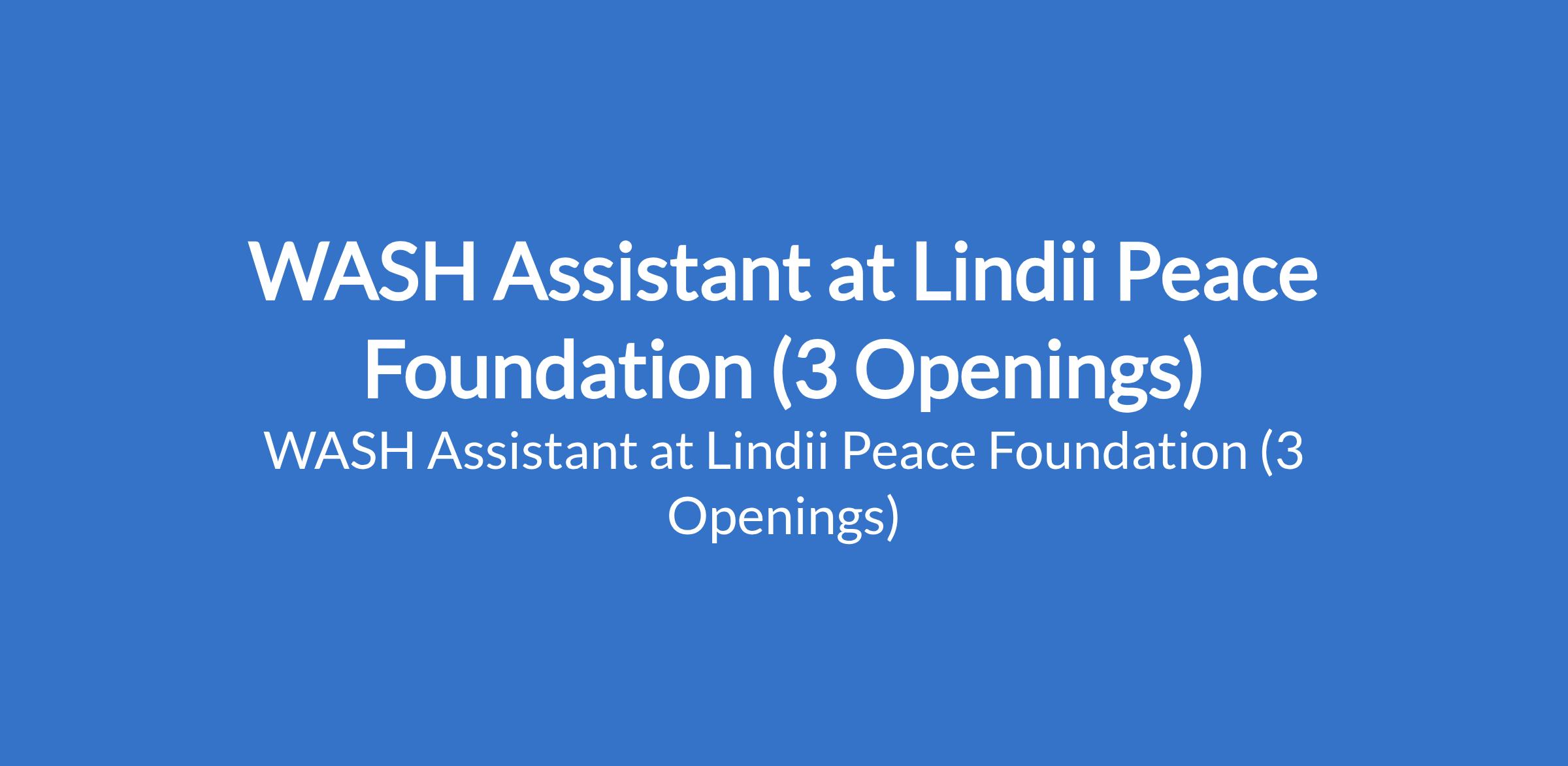 Lindii Peace Foundation is recruiting to fill the position of: WASH Assistant. The position is located in Kaga, Dikwa, and Konduga - Borno State. Interested candidates should possess a BSc / HND in Engineering, Public Health, Biochemistry and other related Science/Social Sciences with a minimum of 2 years relevant experience in implementation of WASH soft component.