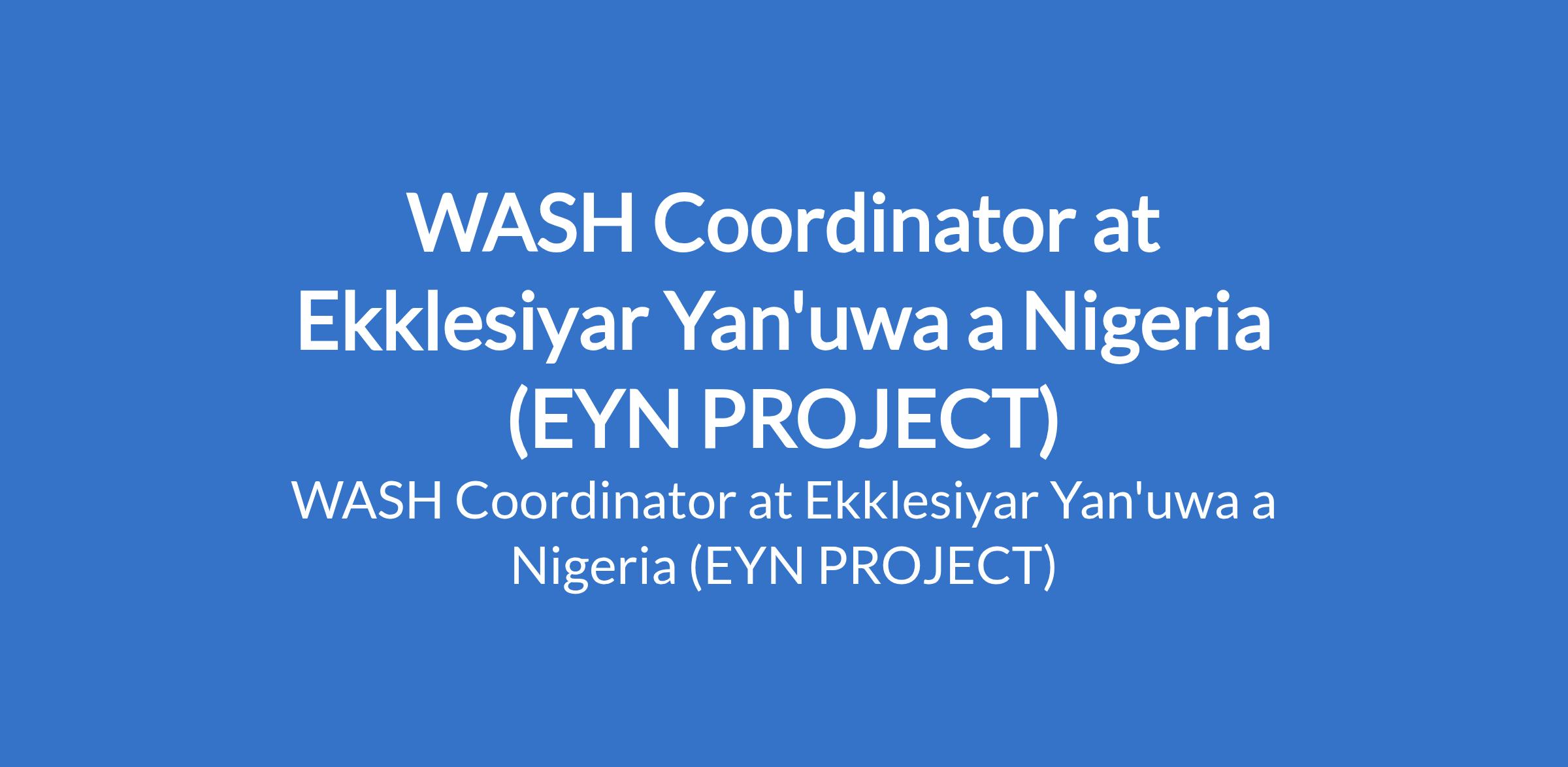 Ekklesiyar Yan'uwa a Nigeria (EYN PROJECT) is recruiting to fill the position of: WASH Coordinator. The position is located in Borno State. Interested candidates should possess a Bachelor`s or Masters Degree in Civil and Water Resource Engineering, Project Management or any related field from a certified tertiary institution with at least three years proven experience use of AutoCAD in designing, supervising construction and Borehole drilling.