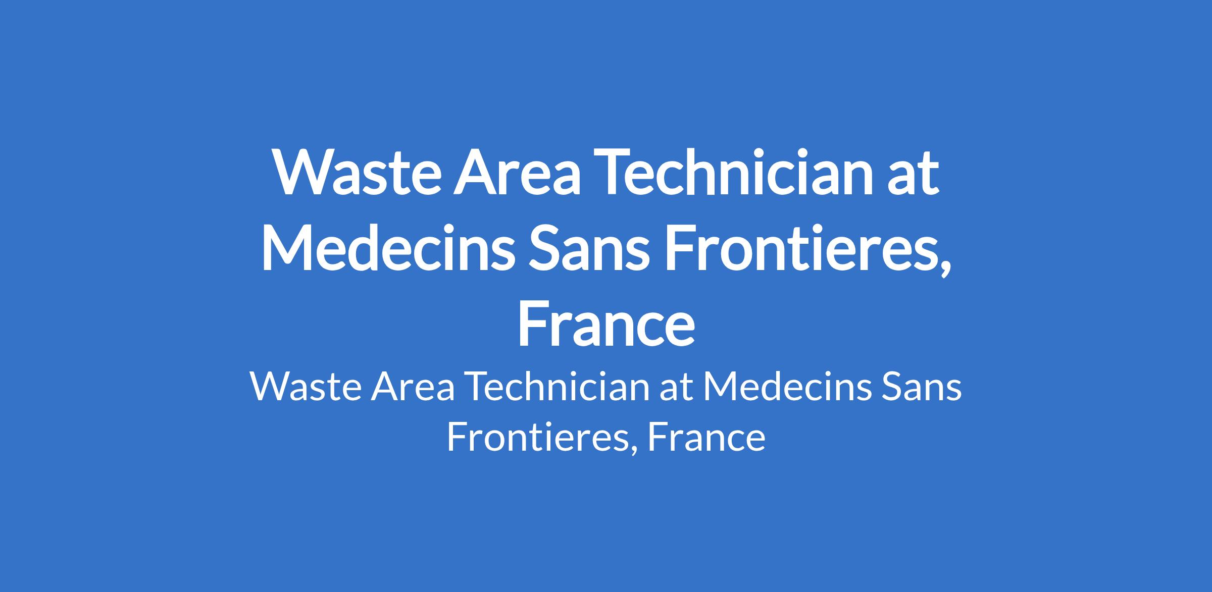 Medecins Sans Frontieres, France is recruiting to fill the position of: Waste Area Technician. The position is located in Jahun, Jigawa State. Interested candidates should possess a High School or technical certificate and previous Position experience with follow-up and application of procedures.