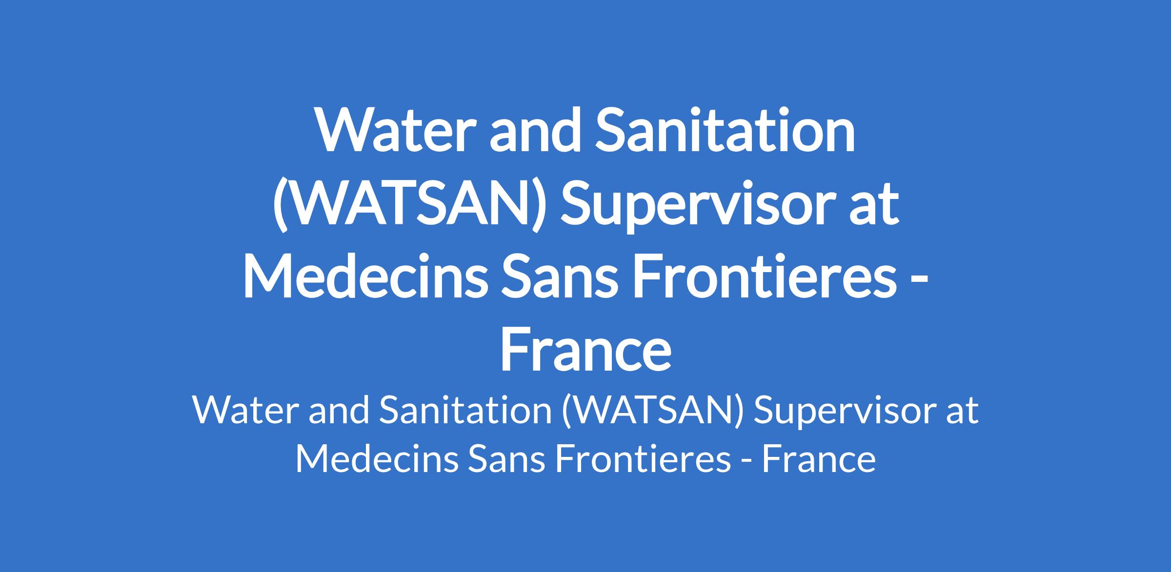Medecins Sans Frontieres (MSF) - Belgium is recruiting to fill the position of: Water and Sanitation (WATSAN) Supervisor. The position is located in Jahun, Jigawa State. Interested candidates should possess a Technical Diploma with previous experience in technical works and organising of multiple activities, preferably within MSF or similar work environment.