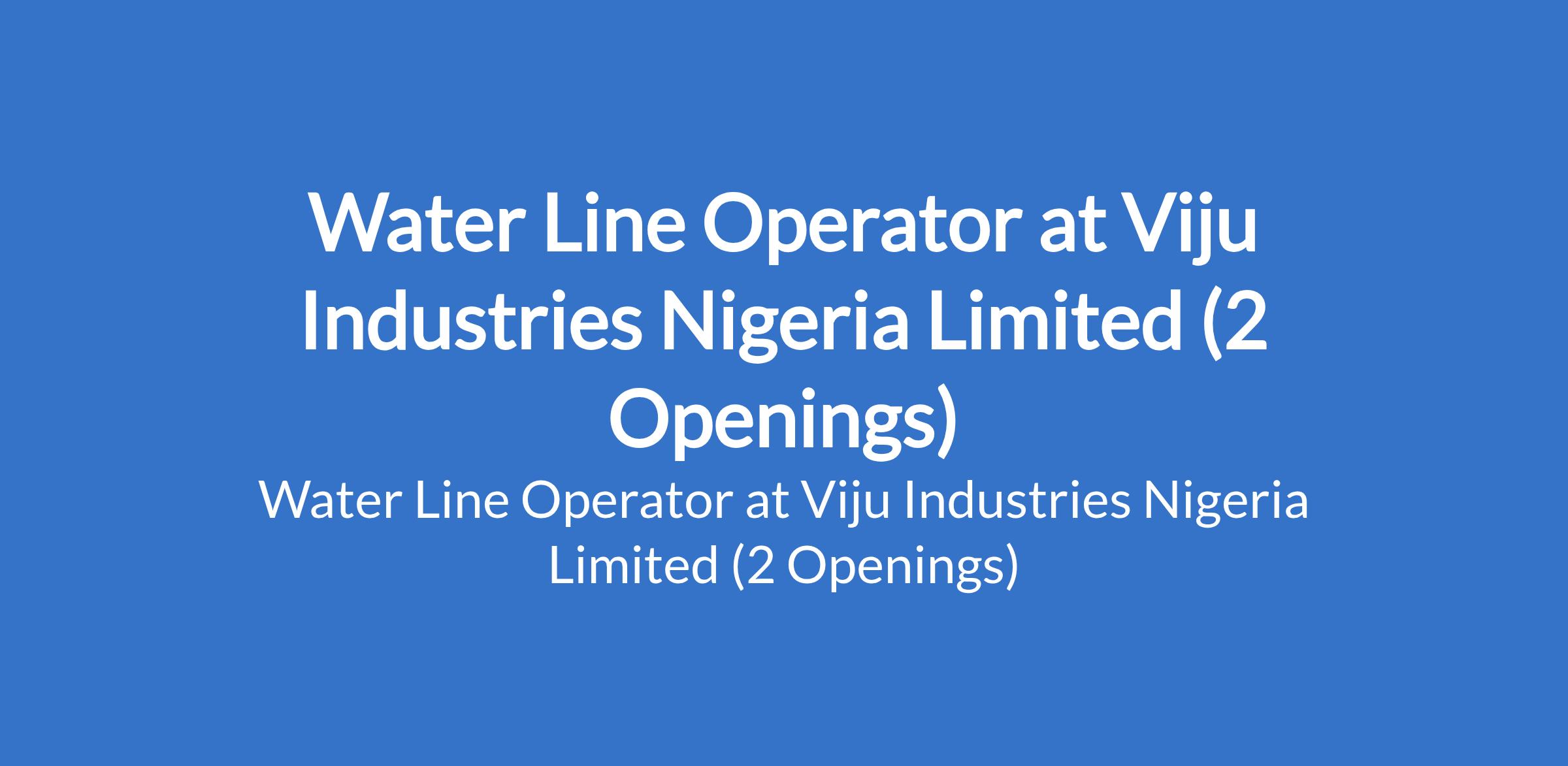 Viju Industries Nigeria Limited is recruiting to fill the position of: Water Line Operator. The position is located in Kwali - Abuja (FCT) and Lagos State. Salary: N100,000 - N250,000 monthly. Interested candidates should possess a Bachelors Degree with over 3 years of hands-on and maintenance experience with 24,000 BPH rinsing-filling-capping equipment.