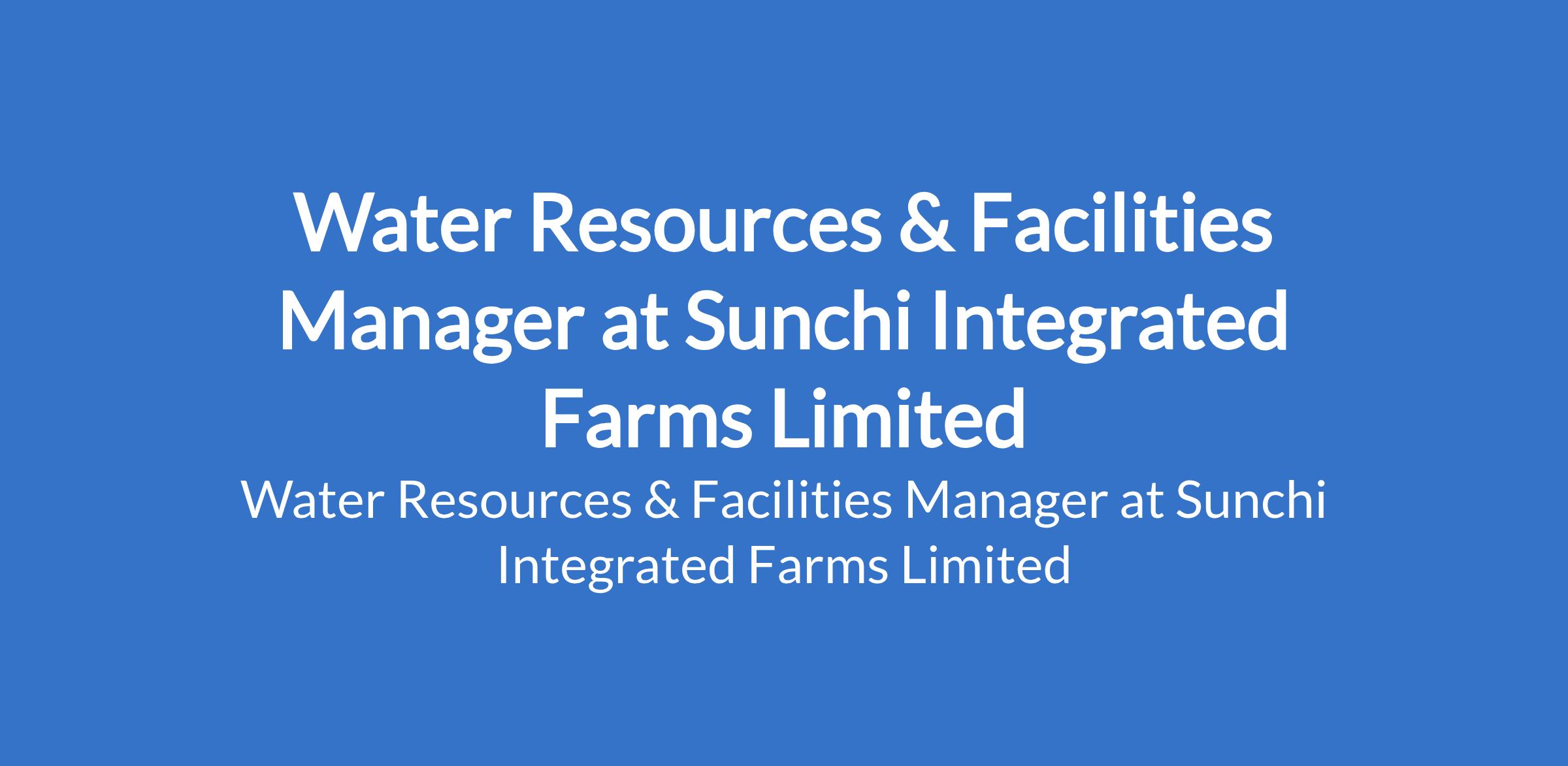 Sunchi Integrated Farms Limited is recruiting to fill the position of: Water Resources & Facilities Manager. The position is located in Emene, Enugu State. B.Eng / HND in Civil, Agricultural, or Water Resources Engineering with 5+ years in industrial water management or farm irrigation.
