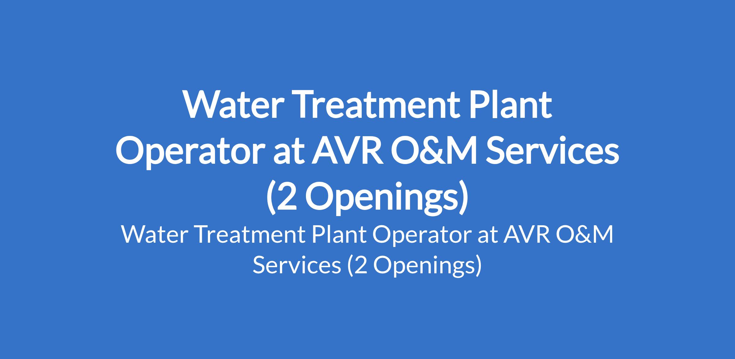 AVR O&M Services is recruiting to fill the position of: Water Treatment Plant Operator. The position is located in Kano State. Interested candidates should possess a relevant qualification with at least 5 years experience in operation & Management (O&M) in power plant.