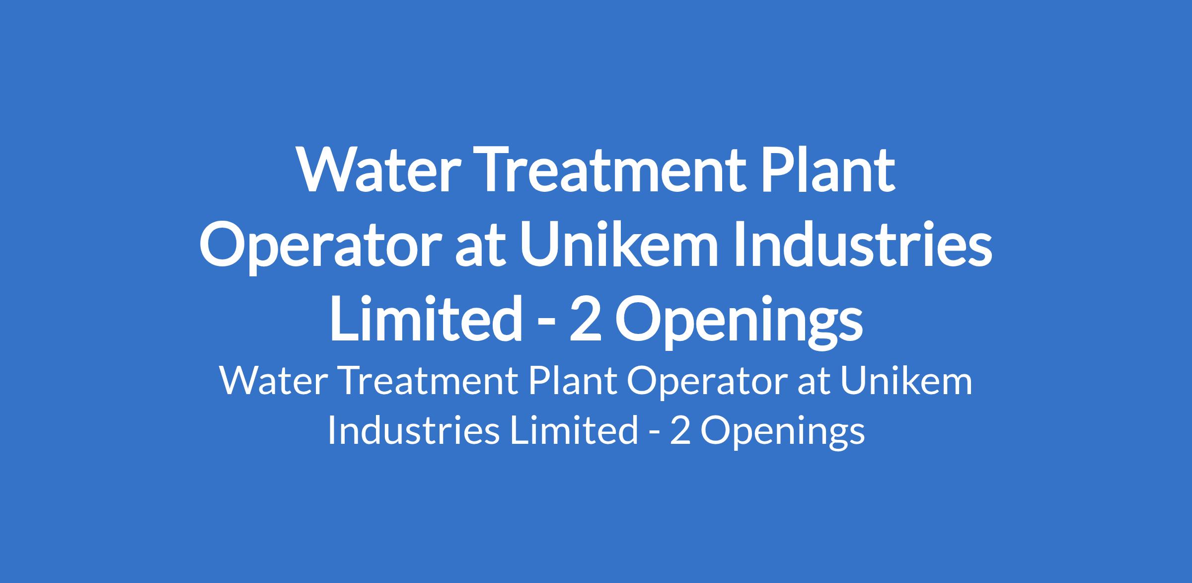 Water Treatment Plant Operator at Unikem Industries Limited - 2 Openings