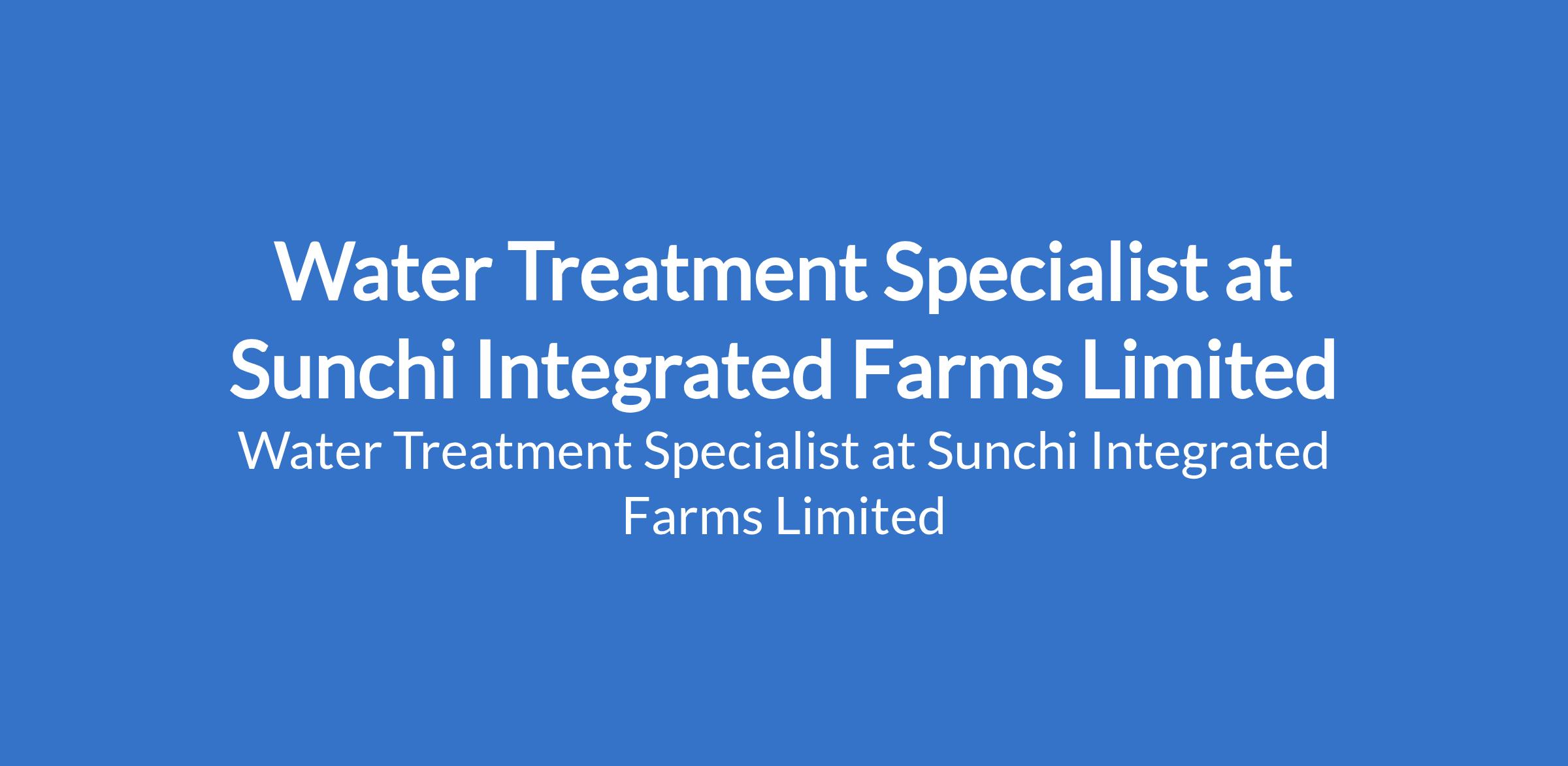 Water Treatment Specialist at Sunchi Integrated Farms Limited