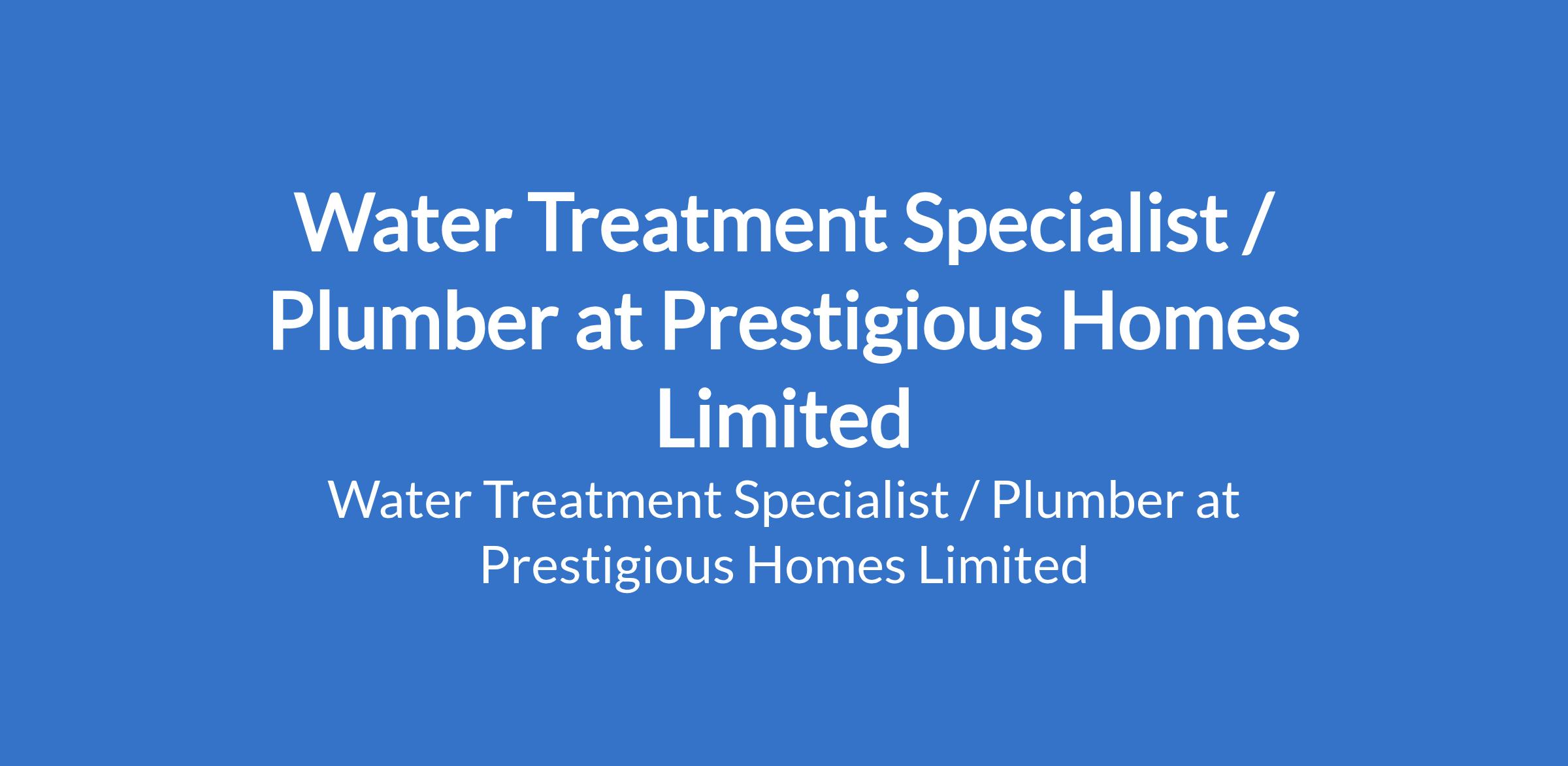 Prestigious Homes Limited is recruiting to fill the position of: Water Treatment Specialist / Plumber. The position is located in Lekki, Lagos State. Interested candidates should possess a minimum of 7 years of experience with proven experience in water treatment systems and plumbing.