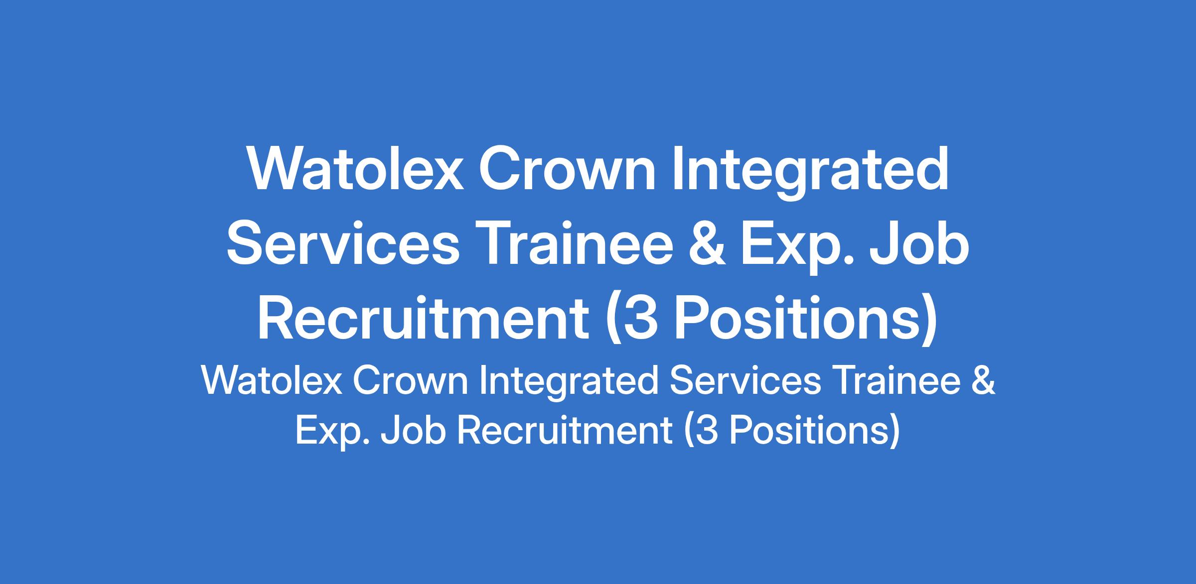 Watolex Crown Integrated Services Trainee & Exp. Job Recruitment (3 Positions)